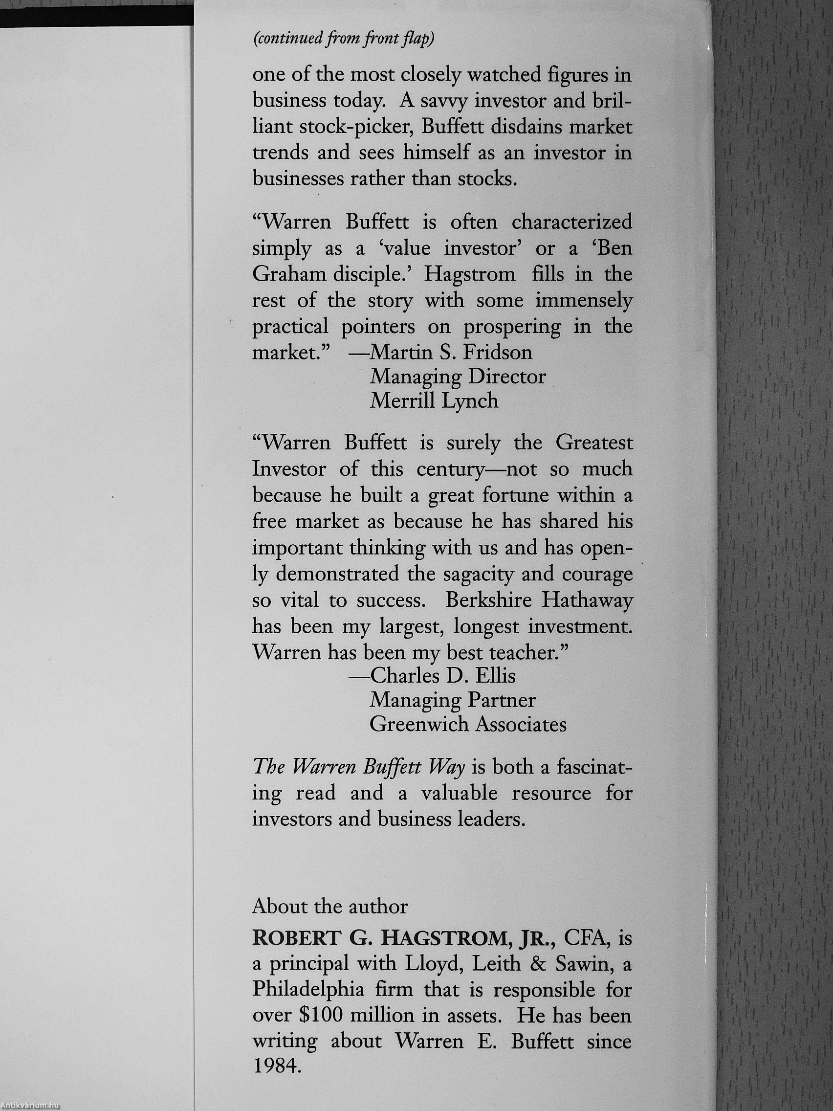 "Warren Buffett is often characterized simply as a 'value investor' or a 'Ben Graham disciple.' Hagstrom fills in the rest of the story with some immensely practical pointers on prospering in the market." —^Martin S. Fridson Managing Director Merrill Lynch