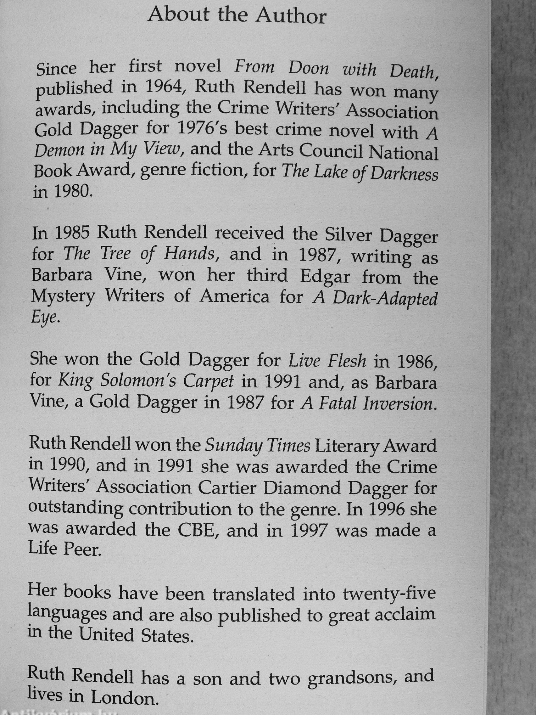 'Rendell is in full control of her craft here' Sunday Times ' ' m