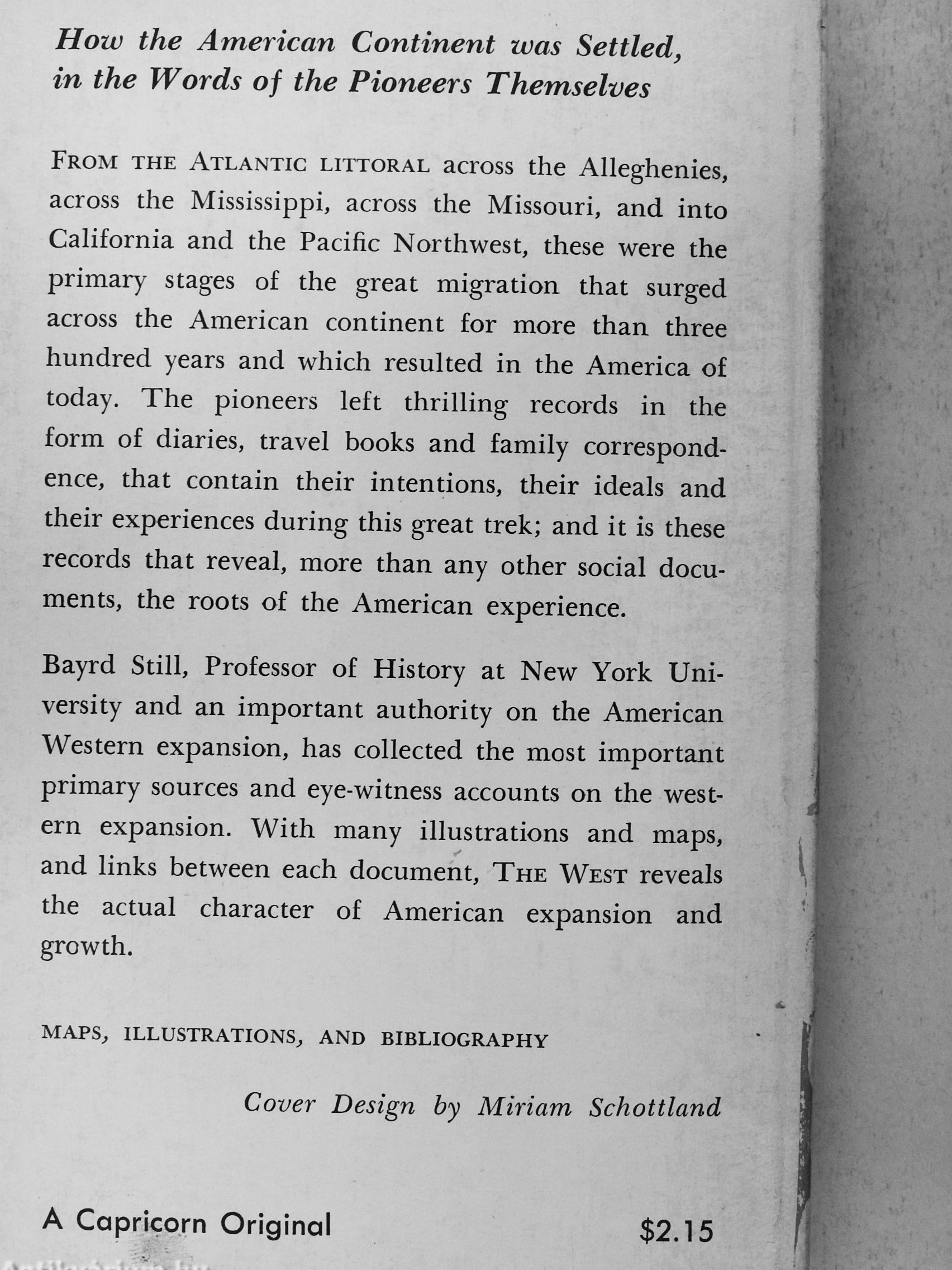Bayrd Still, Professor of History at New York University and an important authority on the American Western expansion, has collected the most important primary sources and eye-witness accounts on the western expansion. With many illustrations and maps, and links between each document, The West reveals the actual character of American expansion and growth.