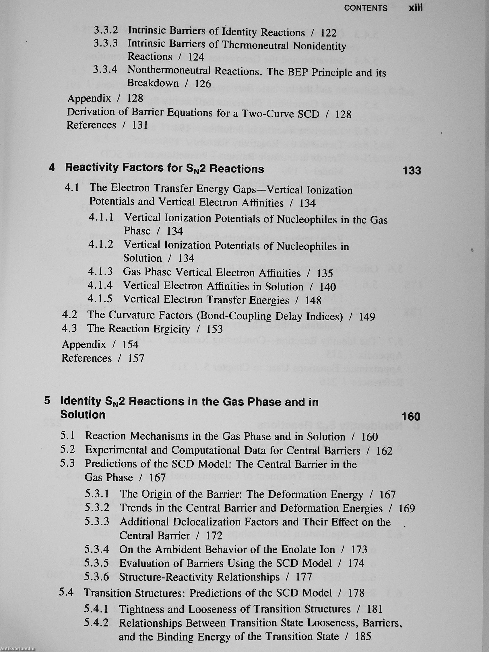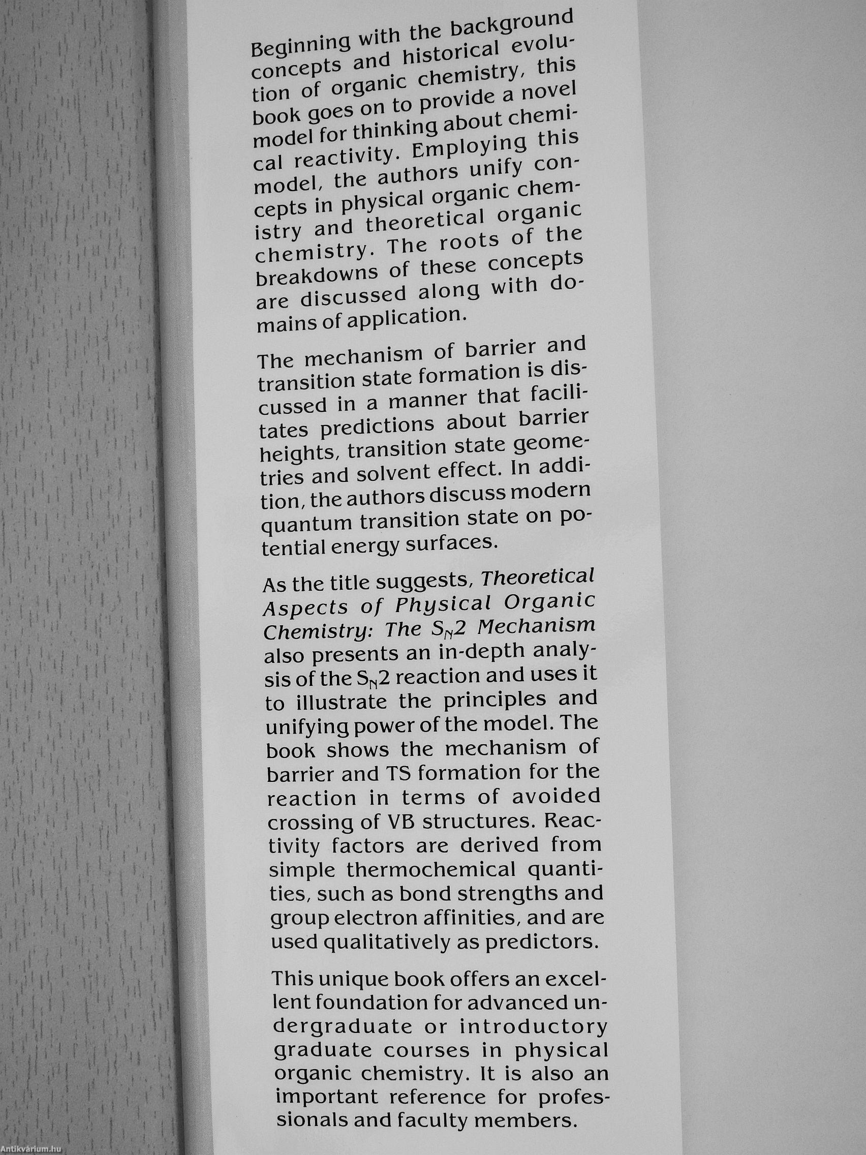 As the title suggests. Theoretical Aspects of Physical Organic Chemistry: The Mechanism also presents an in-depth analysis of the S|,,2 reaction and uses It to illustrate the principles and unifying power of the model. The book shows the mechanism of barrier and TS formation for the reaction in terms of avoided crossing of VB structures. Reactivity factors are derived from simple tbermochemical quantities, such as bond strengths and group electron affinities, and are used qualitatively as predictors.