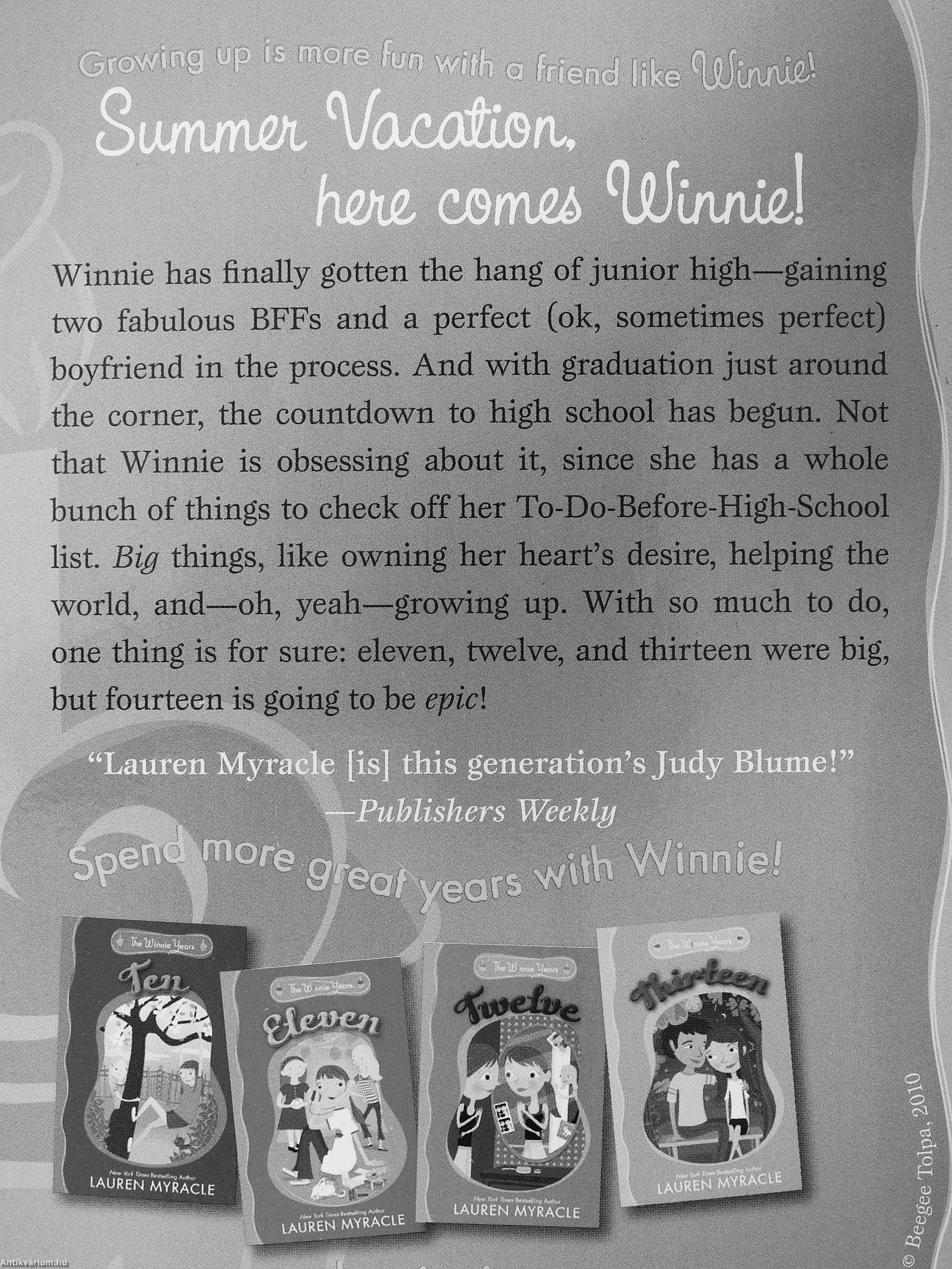 Winnie has finally gotten the hang of junior high—gaining two fabulous BFFs and a perfect (ok, sometimes perfect) boyfriend in the process. And with graduation just around the corner, the countdown to high school has begun. Not that Winnie is obsessing about it, since she has a whole bunch of things to check off her To-Do-Before-High-School list. Big things, like owning her heart's desire, helping the world, and—oh, yeah—growing up. With so much to do, one thing is for sure: eleven, twelve, and thirteen were big, but fourteen is going to be epicl
