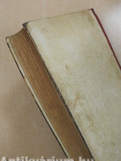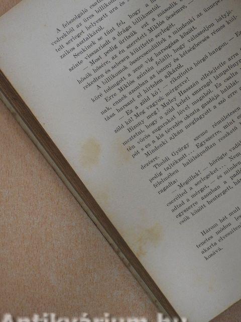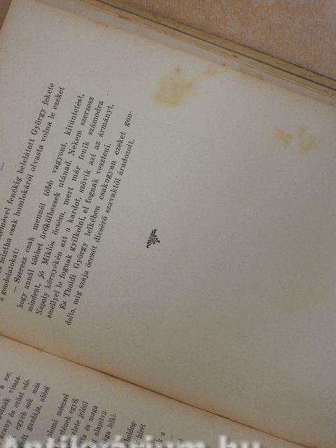 A borító és a lapélek kissé foltosak, a kötés megtört.