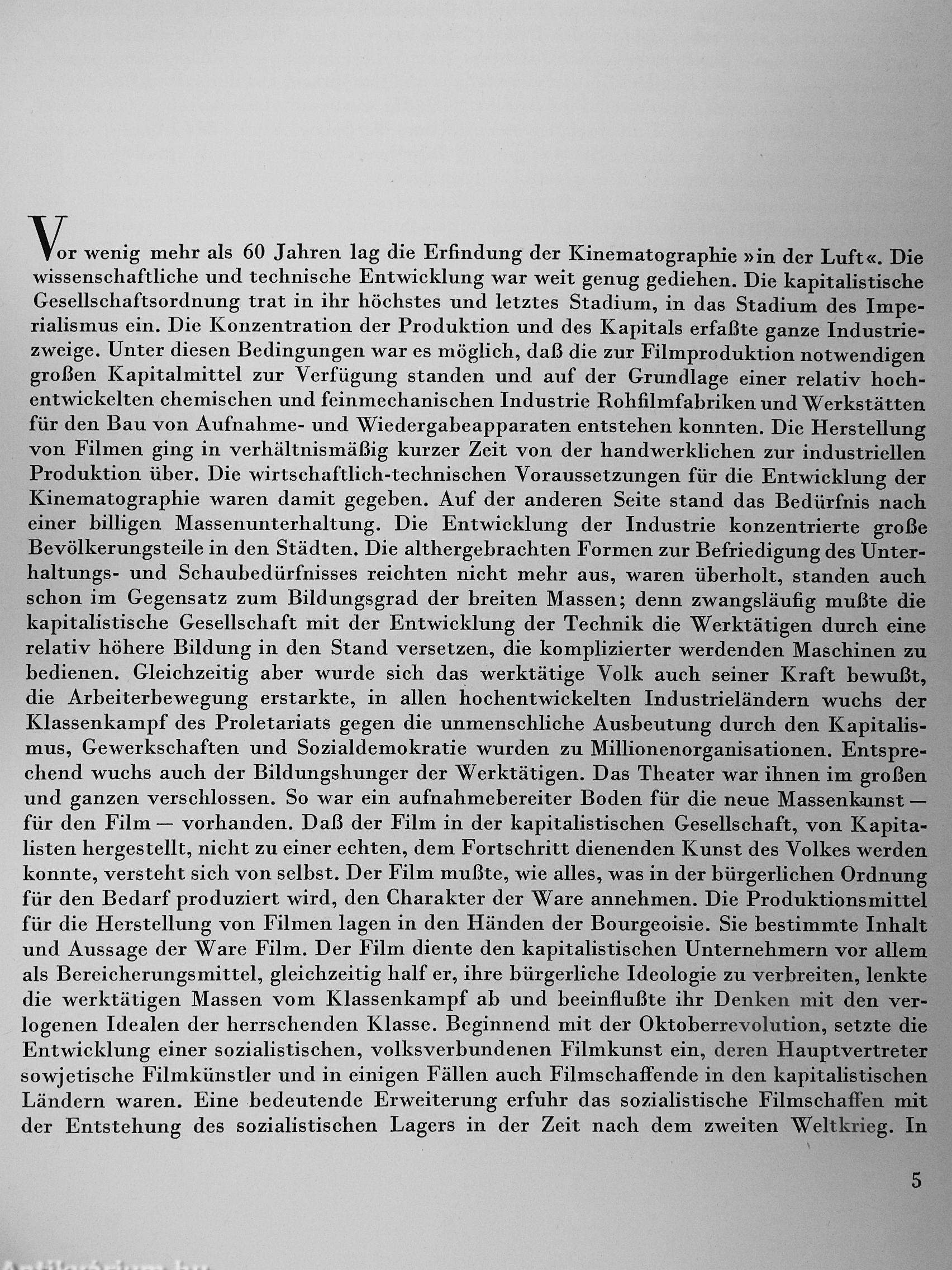 Lebende Bild er wurden die ersten Filme einst von ihren Schöpfern genannt. Als Kunstwerke bezeichnen wir heute die besten der »bewegten Fotografien bewegten Geschehens«. Kunst oder billiges Massenvergnli-gen? Viele interessiert diese Frage. Wir glauben, der Film kann beides sein. Sehr groß ist die Zahl der Kinobesucher im Verhältnis zu denen, die aus innerem Bedürfnis in die Theater, Konzertsäle oder Kunstgalerien gehen. Millionen erleben im Kino erstmalig, was das bedeutet: Kunst — Gestaltung menschlicher Schicksale. Millionenvon Menschen, derenKunst-verständnis noch nicht geweckt war, wurden aber auch verbildet durch die Flut von Kitsch, Unmoral und Unmenschlichkeit, die sich über die weiße Leinwand ergoß. Ist es notwendig, daß man sich mit dem Weg des Films beschäftigt? Es ist notwendig. Und es sollte nicht nur von den »Berufenen«, den Wissenschaftlern und Künstlern getan werden. Es gibt kaum einen Menschen, der nicht ins Kino geht. Jeder sollte wissen wie der Film geworden...