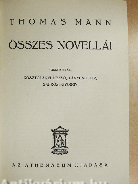 | Jegyzet. A Tristan c. novellát Kosztolányi Dezső, az Úr és kutya, Zűrzavar és kora bánat és Mario és a varázsló c. elbeszéléseket Sárközi György, a kötet többi darabját Lányi Viktor fordította. |