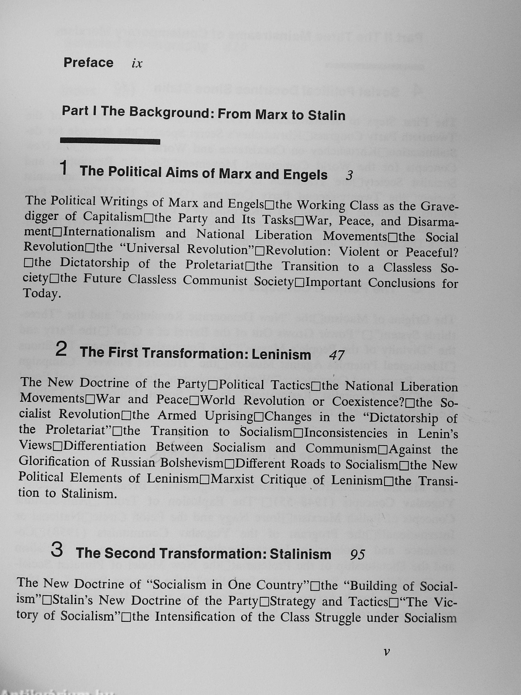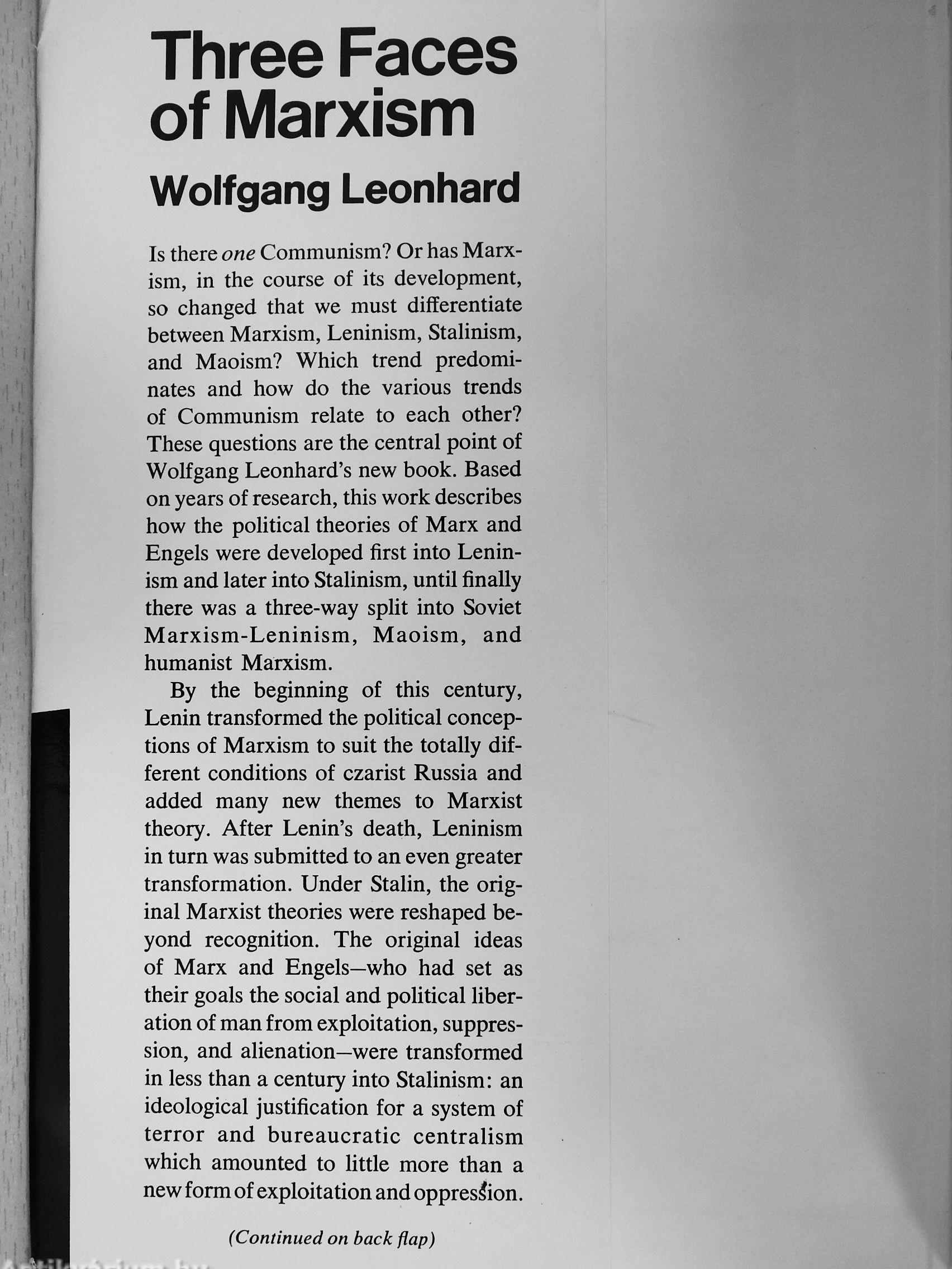 Is there one Communism? Or has Marxism, in the course of its development, so changed that we must differentiate between Marxism, Leninism, Stalinism, and Maoism? Which trend predominates and how do the various trends of Communism relate to each other? These questions are the central point of Wolfgang Leonhard's new book. Based on years of research, this work describes how the political theories of Marx and Engels were developed first into Leninism and later into Stalinism, until finally there was a three-way split into Soviet Marxism-Leninism, Maoism, and humanist Marxism.