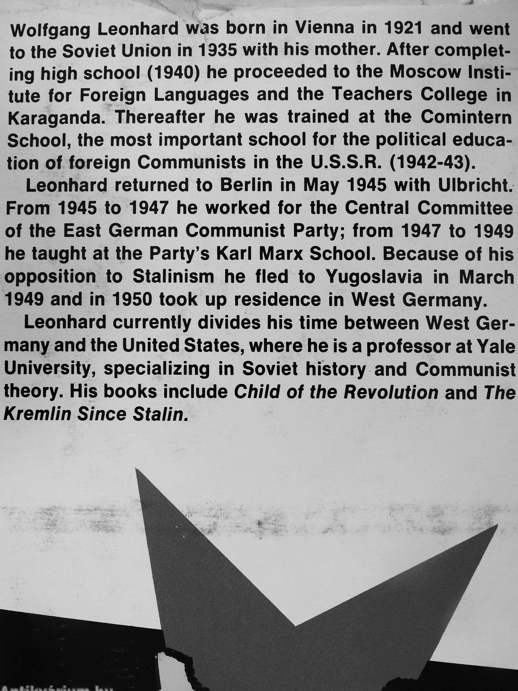 Wolfgang Leonhard was born in Vienna in 1921 and went to the Soviet Union in 1935 with his mother. After completing high school (1940) he proceeded to the Moscow Institute for Foreign Languages and the Teachers College in Karaganda. Thereafter he was trained at the Comintern School, the most important school for the political education of foreign Communists in the U.S.S.R. (1942-43).