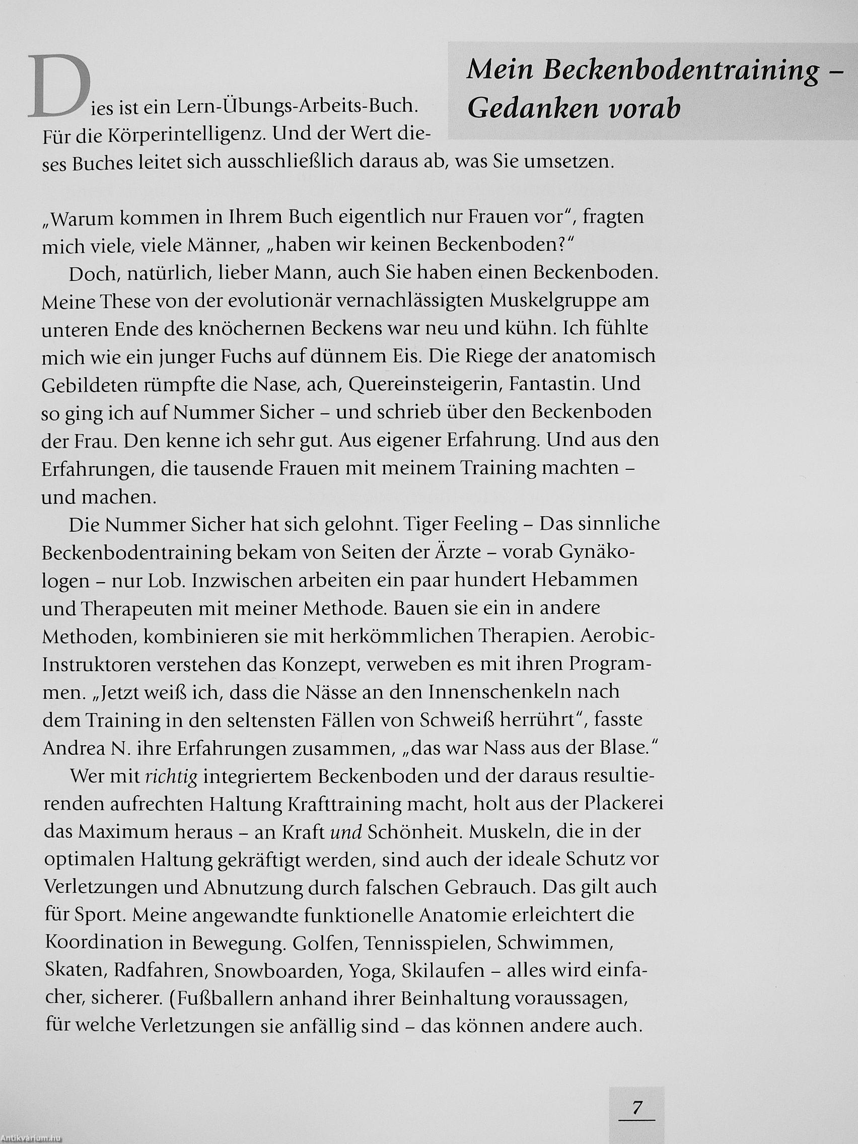 »Benita Cantieni hat erkannt, wie wichtig für uns der Beckenboden ist. Im Beckenboden finden die Bewegungsabläufe des ganzen Körpers statt, er gibt uns Gleichgewicht, Kraft und Sicherheit. Es ist erstaunlich, was Sie mit diesem Training bei etwas Ausdauer erreichen können. Versuchen Sie es doch selbst. Dieses ganzheitliche Trainingsprogramm ist für Frauen und Männer geeignet.«