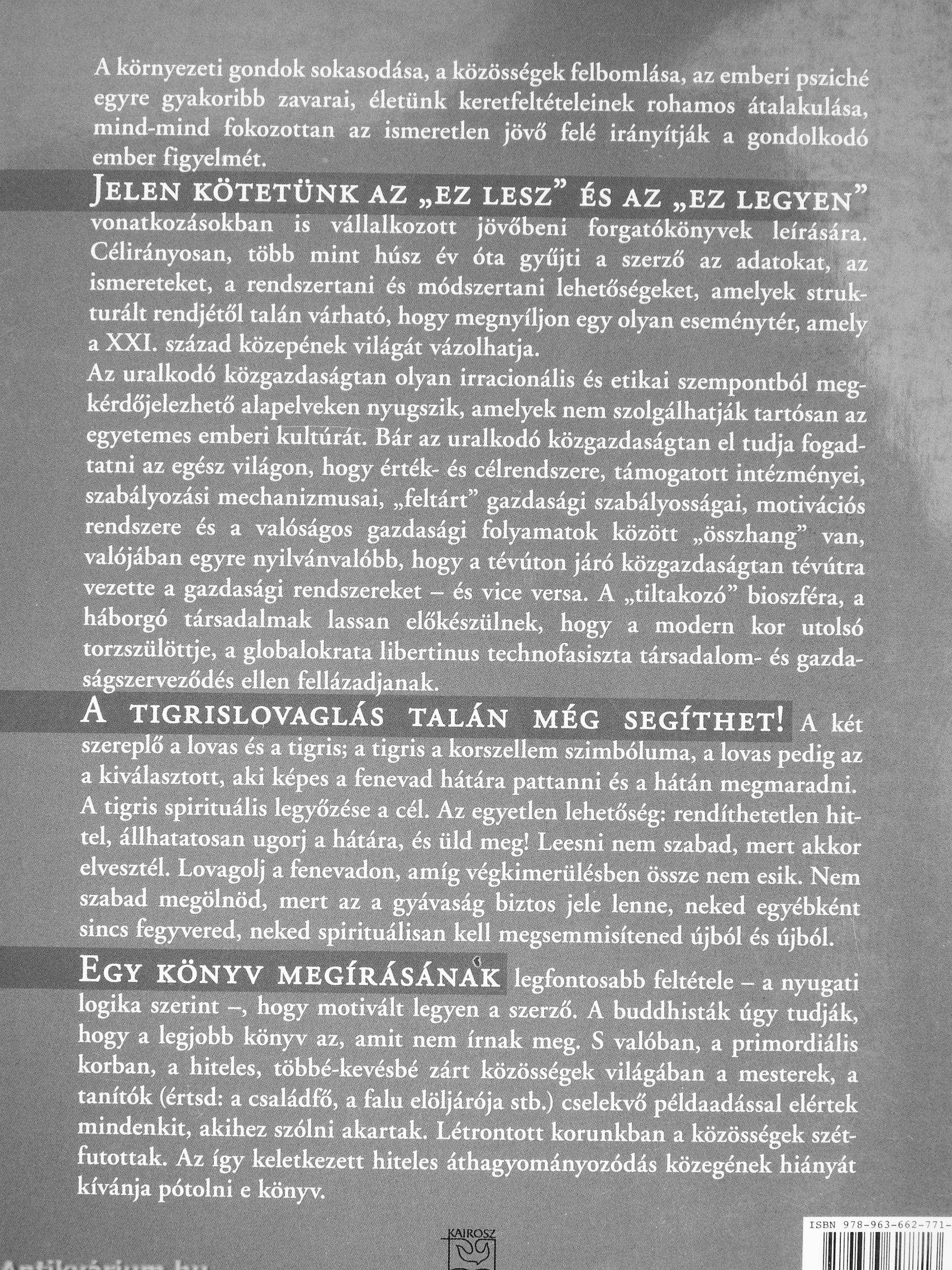 Egy könyv megírásának legfontosabb feltétele - a nyugati logika szerint —, hogy motivált legyen a szerző. A buddhisták úgy tudják, hogy a legjobb könyv az, amit nem írnak meg. S valóban, a primordiális korban, a hiteles, többé-kevésbé zárt közösségek világában a mesterek, a tanítók (értsd: a családfő, a falu elöljárója stb.) cselekvő példaadással elértek mindenkit, akihez szólni akartak. Létrontott korunkban a közösségek szétfutottak. Az így keletkezett hiteles áthagyományozódás közegének hiány^ kívánja pótolni e könyv. __ ¦ Vissza