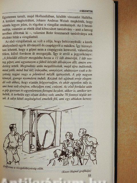 1712-ben egy fiatal német vándororvos, Orffyreus szokatlan szerkezetet mutat be: egy kereket, ami állandóan forog, súlyokat emel fel, hónapokon át lezárt szobában is mozog, s másik álványra is áthelyezhető. A kor tudósai és hitelt érdemlő emberei többször is megvizsgálják a szerkezetet, látják, hogy nem külső hatás mozgatja a kereket. A feltaláló nem árulja el, inkább a sírba viszi a titkot, de a 100.000 talléros vételárból nem enged...