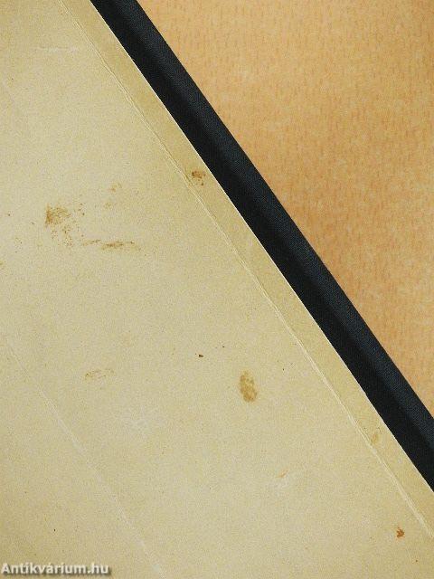 A gerinc megtört, elszíneződött, sérült. A borító foltos, felső éle sérült.