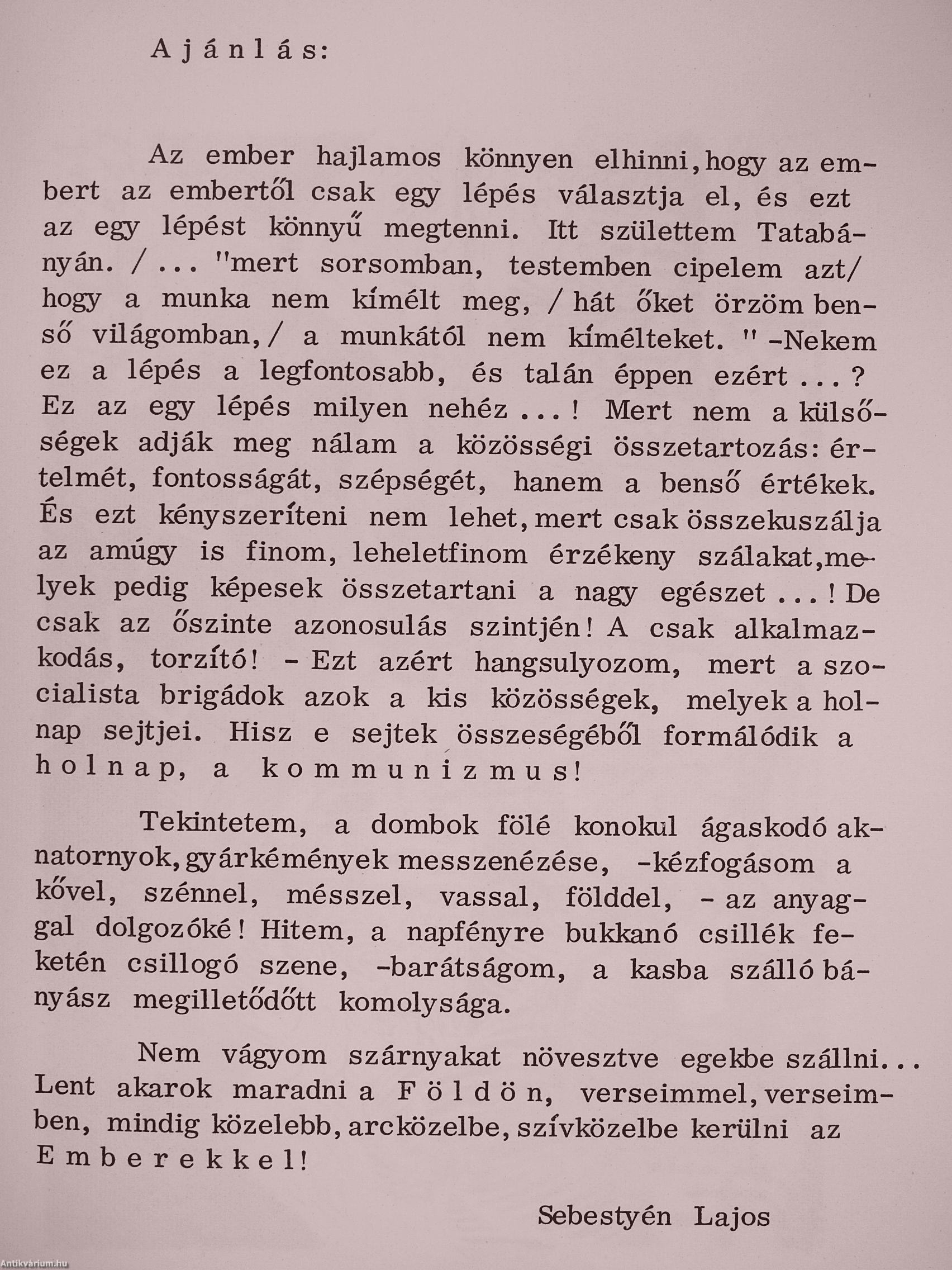 A címlapon a szerző, Sebestyén Lajos névre szóló dedikációja látható.