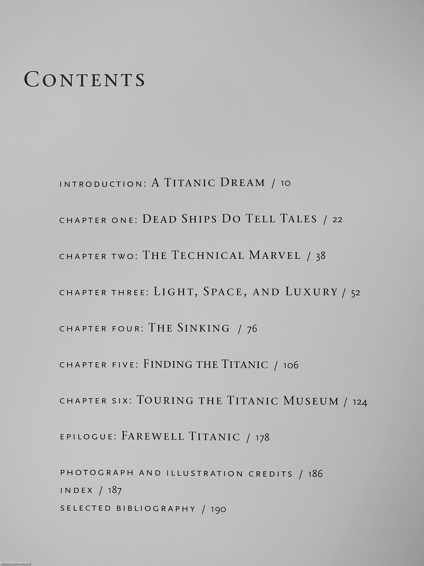Dr. Ballard's underwater photographs show the wreck and the surrounding debris field in painstaking detail. These new Images reveal portions of the wreck from a variety of perspectives, taking us on a detailed tour of the ship. Using high-tech underwater images, historical black-and-white photos, and period illustrations, TITANIC The Last Great Innages recounts the tragic liner's history as never before.