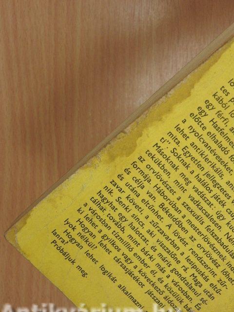 Háborúban a mesterlövészt az ellenséges katonák megsemmisítésére képezik ki. Ha elég sokat kinyír közülük, kitüntetést kap. A háborús mesterlövész veszedelmes szakember. Békében akárki lehet mesterlövész, illetve orvlövész. Lehet akár egy gyerek is, aki új sörétes puskáját próbálja ki, s a hálószobája ablakából lövöldöz vaktában a járókelőkre. Lehet egy férfi, aki mindenre rálő, ami piros. Lehet egy Hasfelmetsző Jack-fajta, aki rálő minden előtte elhaladó formás kis szőkére. Gyűlölheti a nyolcvanéveseket, a békét, az embereket, lehet antiklerikális, antivegetáriánus, antiszemita. Egyetlen jellegzetes vonása az, hogy "anti". Soknak a halálos játék csupán lőgyakorlat. Másoknak meg vadászat: úgy kucorognak rejtekükben, mint vadkacsalesen. Némelyeknek az orvlövészet a szexuális felszabadulás egyik formája. Háborúban a mesterlövésznek indoka és célja van. Békeidőben az orvlövész lőhet, és utána eltűnhet. A lövést rendszerint zűrzavar követi, a zűrzavarban a lesipuskás eltűnik. Senki sincs, aki visszalőne rá. Maga után hagyhat egy halottat, és máris gondtalanul sétálhat tovább, mint bárki más a városban. És a városban tízmillió ember él, és közülük bárki lehet a gyilkos vagy a következő áldozat.