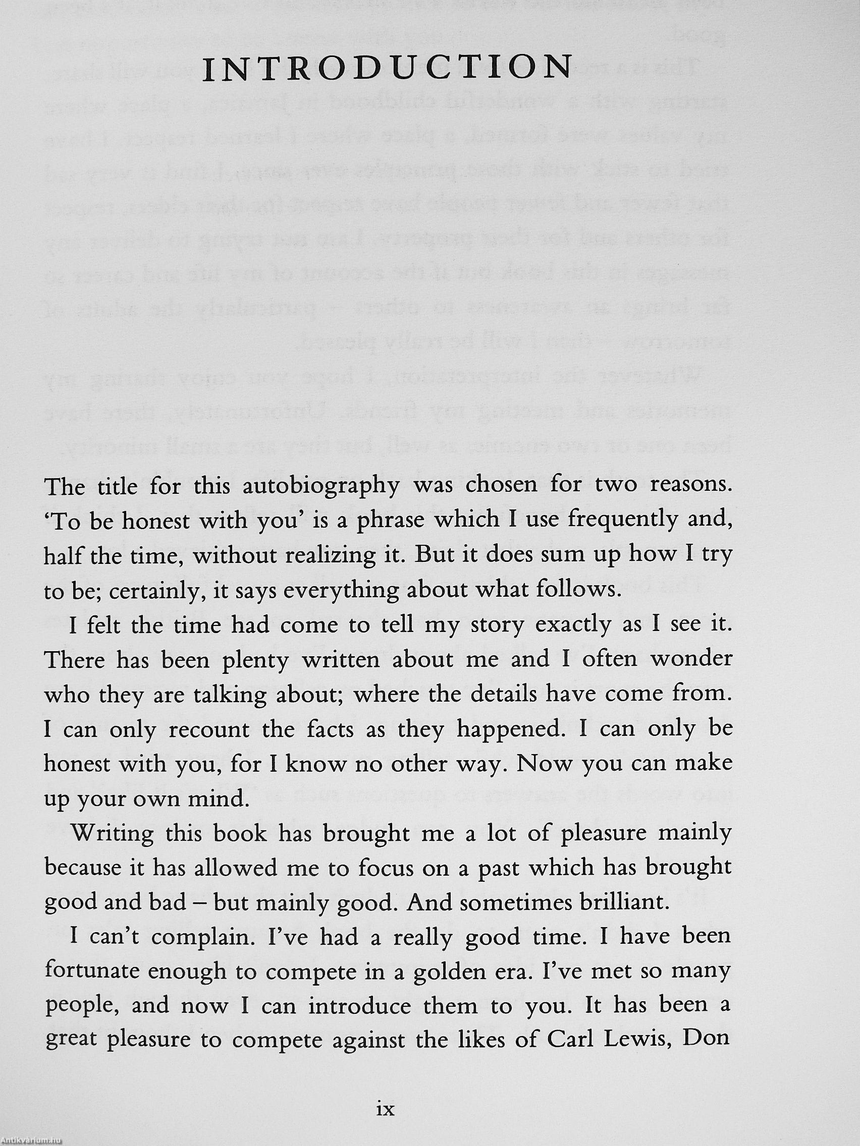 Success of this magnitude does not come easily. Along the way, Linford has been through as many clashes with the media as with his rivals. In To Be Honest With You he deUvers frank opinions on the state of athletics today, the use of drugs, his treatment by the press and the quality ofthe opposition. He talks of his life both on and off the track, his fitness and technique, family and friends, finance and the future. But, most of all, he reveals just what goes through the mind of one ofthe greatest sprinters the world has ever seen as he steps into the blocks and prepares to cover 100 metres faster than anyone else. It may take less than ten seconds but victory in the 100 metres is the result of years of intense dedication and hardship, satisfaction and elation. AH of this, and more, is covered by To Be Honest With You, the most compelling book ever written by a top international athlete.