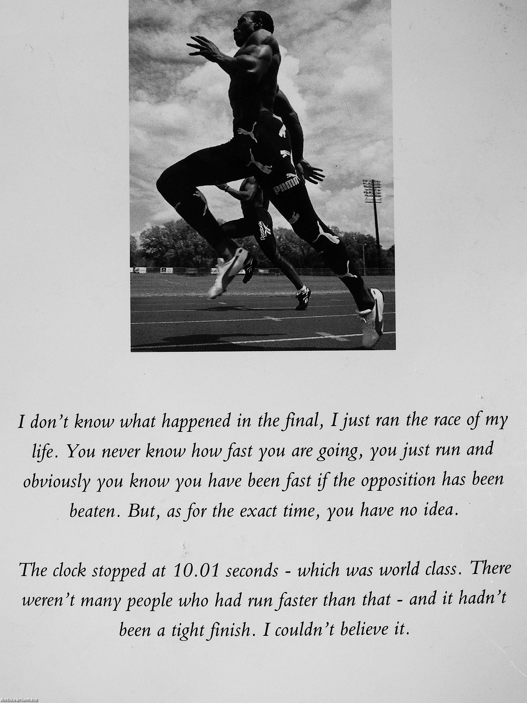 life. You never know how fast you are going, you just run and obviously you know you have been fast if the opposition has been beaten. But, as for the exact time, you have no idea.