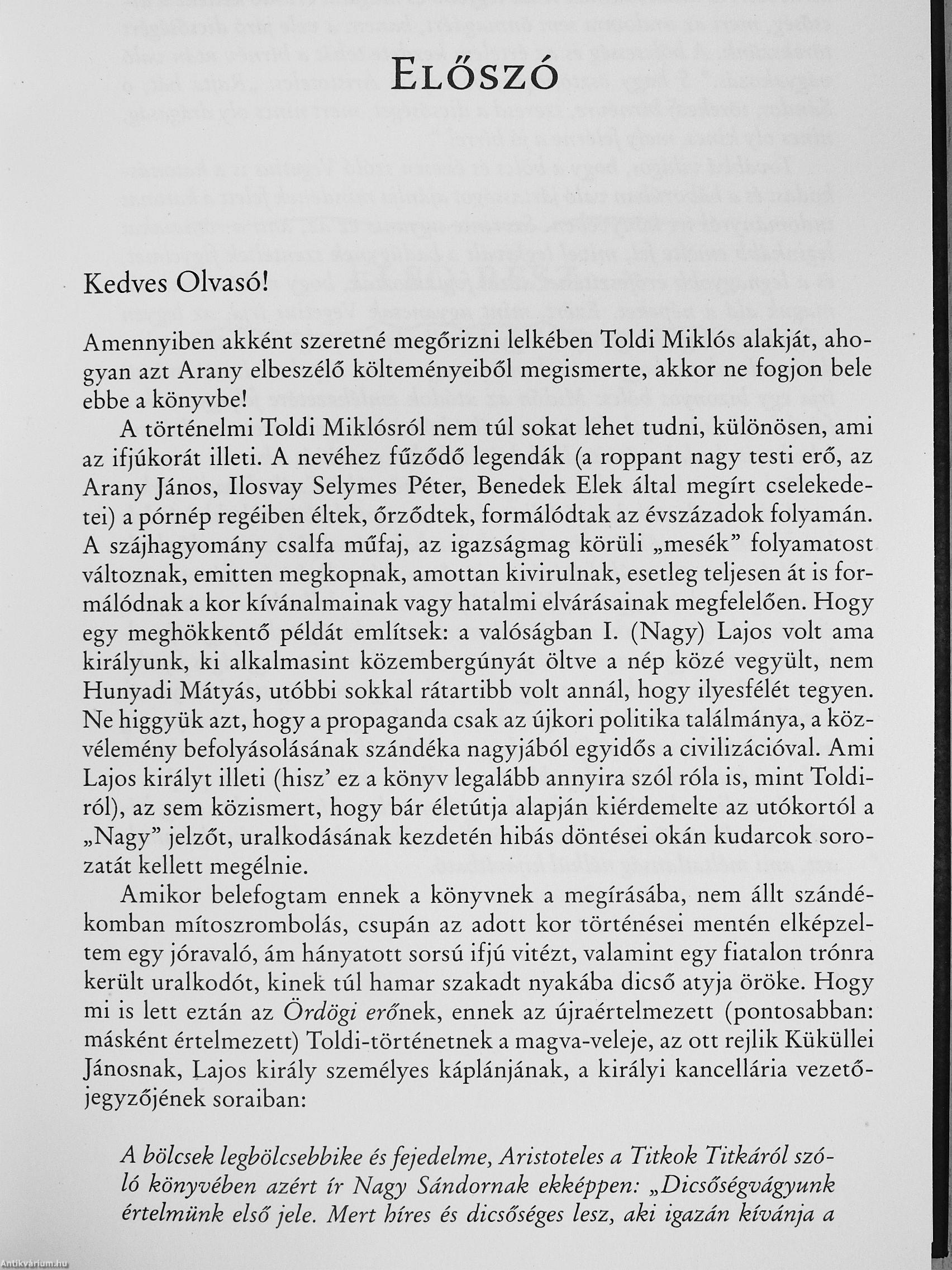 Amennyiben akként szeretné megőrizni lelkében Toldi Miklós alakját, ahogyan azt Arany elbeszélő költeményeiből megismerte, akkor ne fogjon bele ebbe a könyvbe!