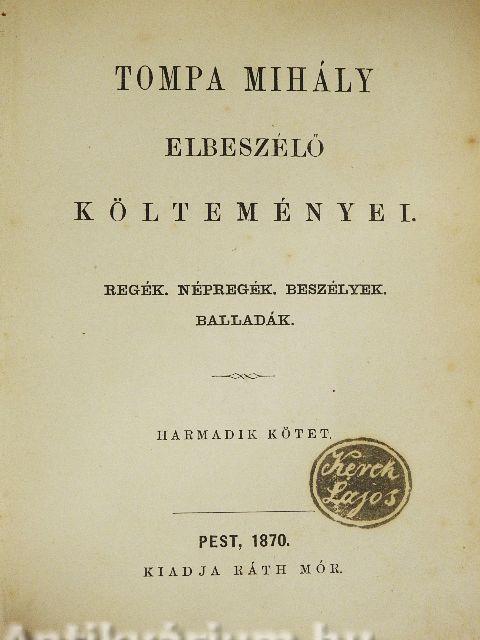 | Sorozatcím: | Tompa Mihály összegyüjtött költeményei |