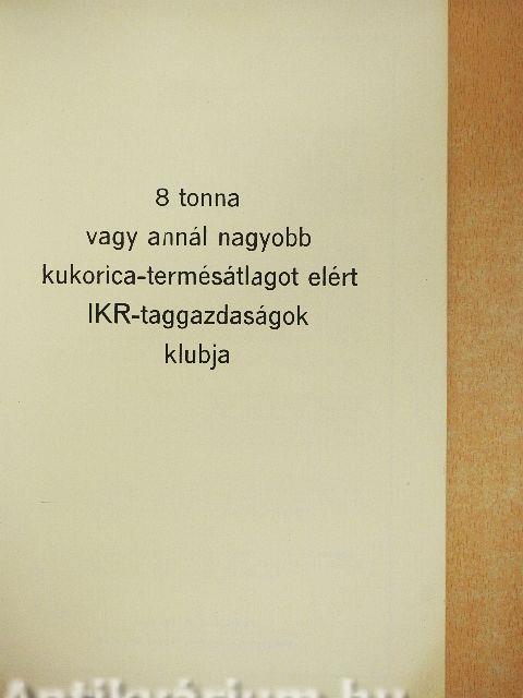 8 tonna vagy annál nagyobb kukorica-termésátlagot elért IKR-taggazdaságok klubja
