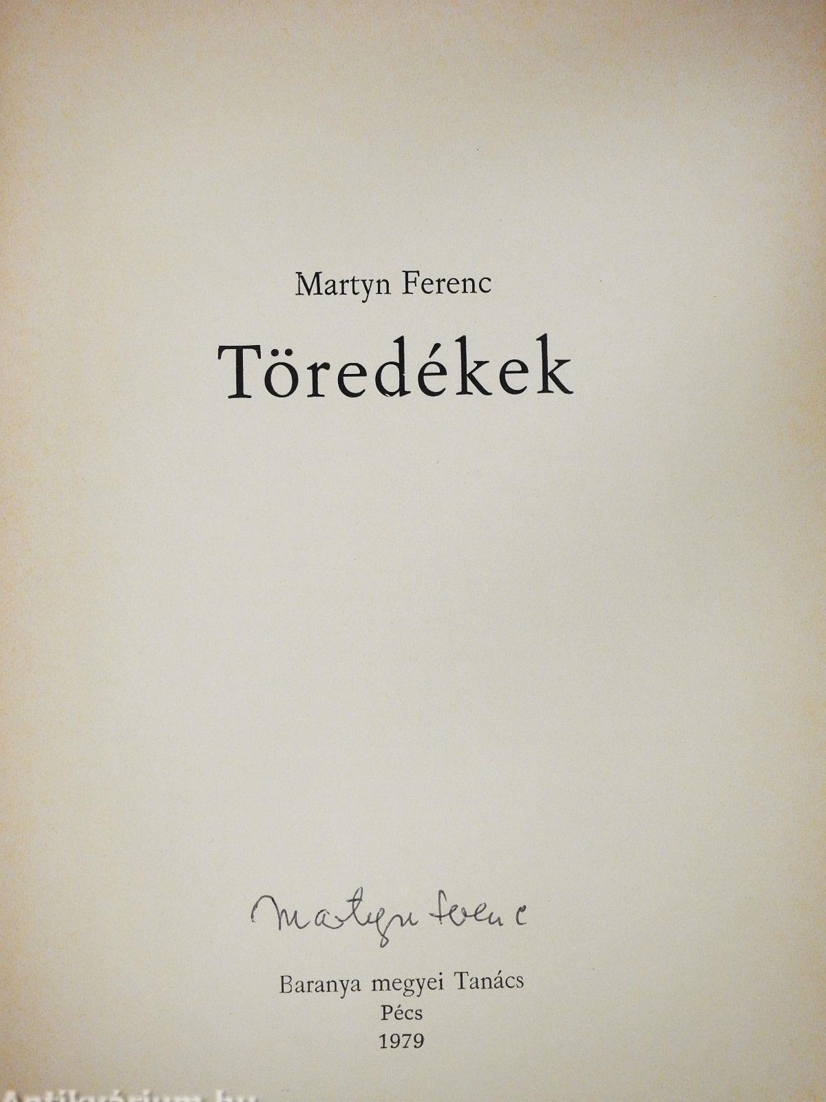 Töredékek (aláírt példány) Töredékek (aláírt példány) Töredékek (aláírt példány) Töredékek (aláírt példány) Töredékek (aláírt példány)
