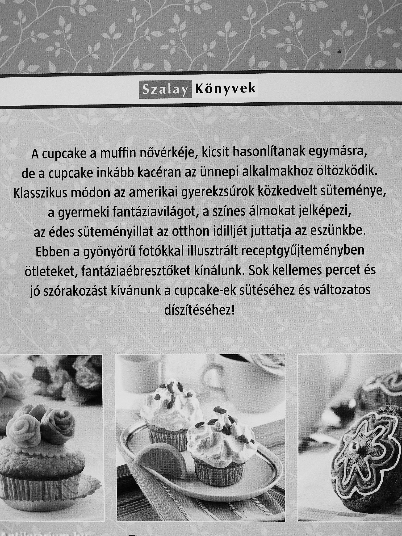A cupcake a muffin nővérkéje, kicsit hasonlítanak egymásra, de a cupcake inkább kacéran az ünnepi alkalmakhoz öltözködik. Klasszikus módon az amerikai gyerekzsúrok közkedvelt süteménye, a gyermeki fantáziavilágot, a színes álmokat jelképezi, az édes süteményillat az otthon idilljét juttatja az eszünkbe. Ebben a gyönyörű fotókkal illusztrált receptgyűjteményben ötleteket, fantáziaébresztőket kínálunk. Sok kellemes percet és jó szórakozást kívánunk a cupcake-ek sütéséhez és változatos