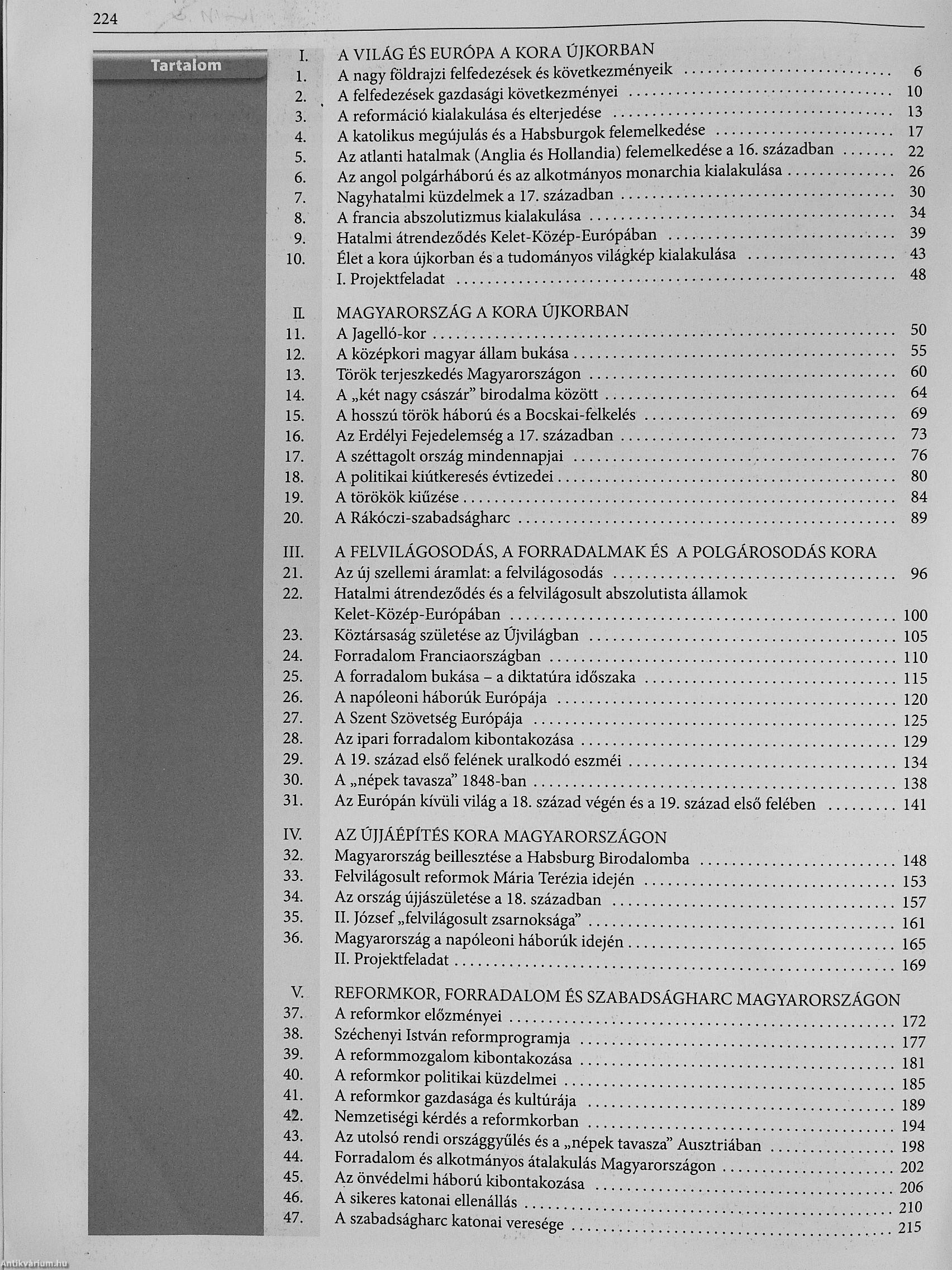 A történelem éppúgy meghatározza a humán tudományok kereteit, mint a matematika a természettudományokét. Mindennek van története, az irodalomnak, a művészetnek, a zenének, sőt még a történettudománynak is. A történelem nem évszámok és nagy csaták kusza halmaza, hanem okok és következmények, szándékok és cselekvések rendszere. Az emberi közösségek éppúgy megfoghatók konfliktusaikban, háborúikban, érdekeikben, mint ahogy értékeikben, együttműködésükben és hitvilágukban. Nagy baj, ha csak az egyik szemlélet érvényesül a történelem tanulmányozásakor. Könyvünkben mindkét szempontot érvényesítve követjük végig az emberiség történetét 1492-től a szabadságharc leveréséig, reményeink szerint nemcsak tananyagot, hanem izgalmas olvasmányt is a diákok kezébe adva.