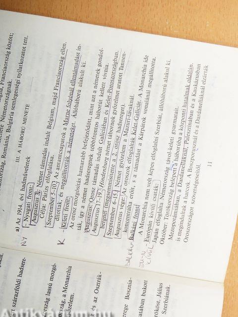 Több lapon és a borítón aláhúzások, bejegyzések és jelölések találhatók.