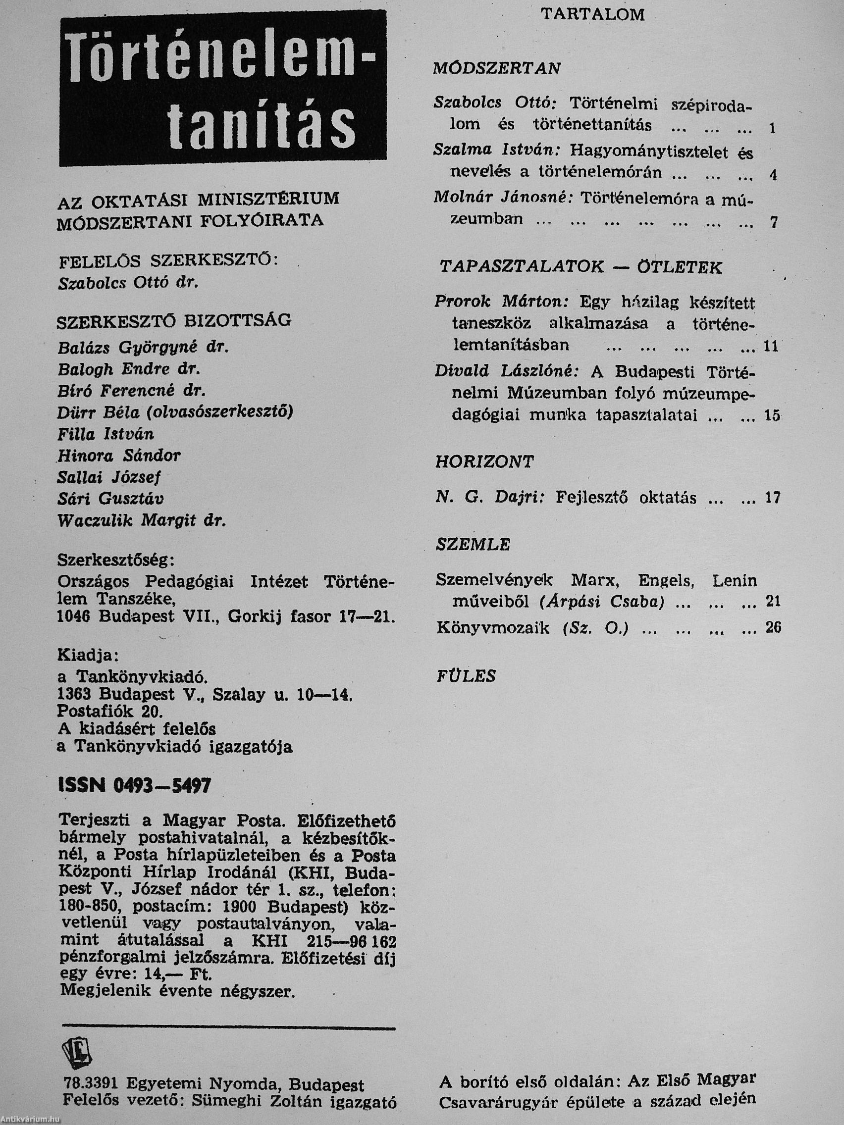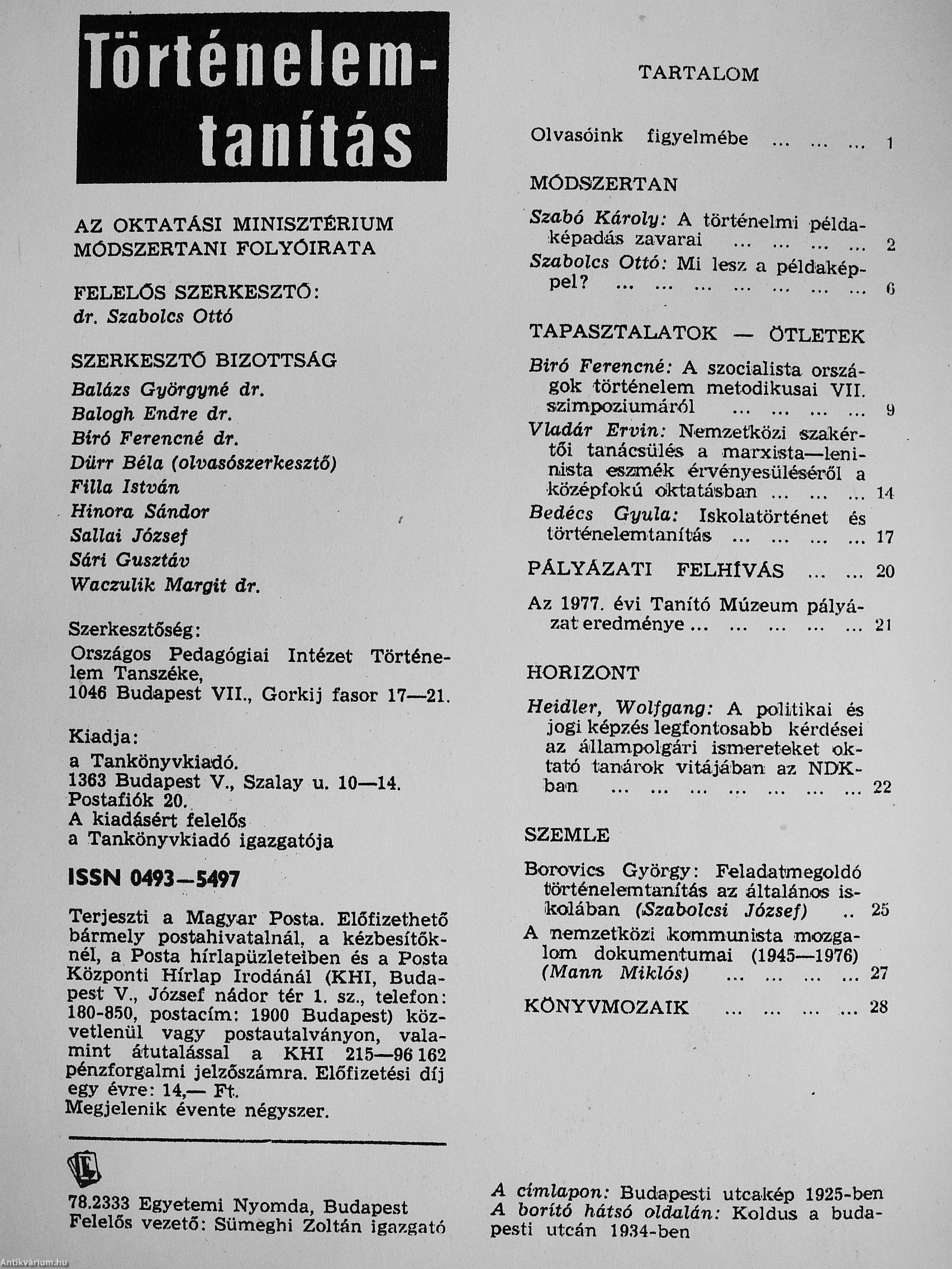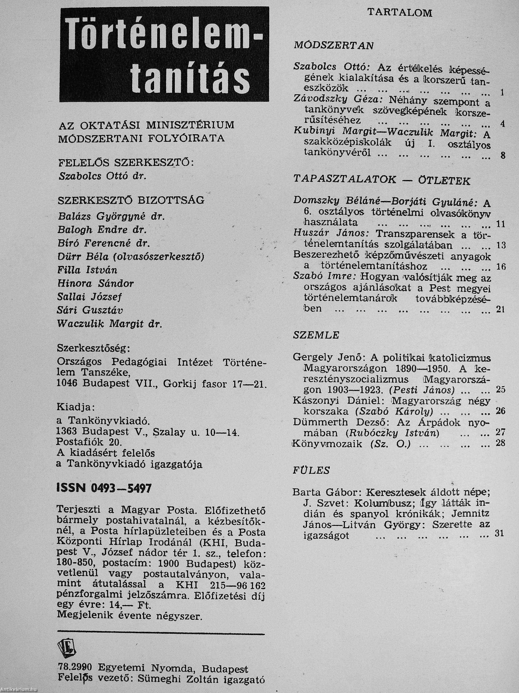 Történelemtanítás 1978. (nem teljes évfolyam) Történelemtanítás 1978. (nem teljes évfolyam)