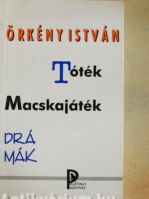 E kötetben közölt másik drámájának a Macskajáték-nak főhőse özvegy Orbán Béláné. "Megvan benne minden, amire az ember képes - írja Örkény róla -, egy piaci kofa nagyszájúsága és egy görög tragika fensége. Orbánné a természet törvényei ellen harcol, mert semmibe veszi az öregséget, és hadat üzen az összeomlás, a kifulladás órája is, öröme inkább csak jelkép, ahogy egy zászló lobog egy rommá lőt, kiégett város füstölgő...