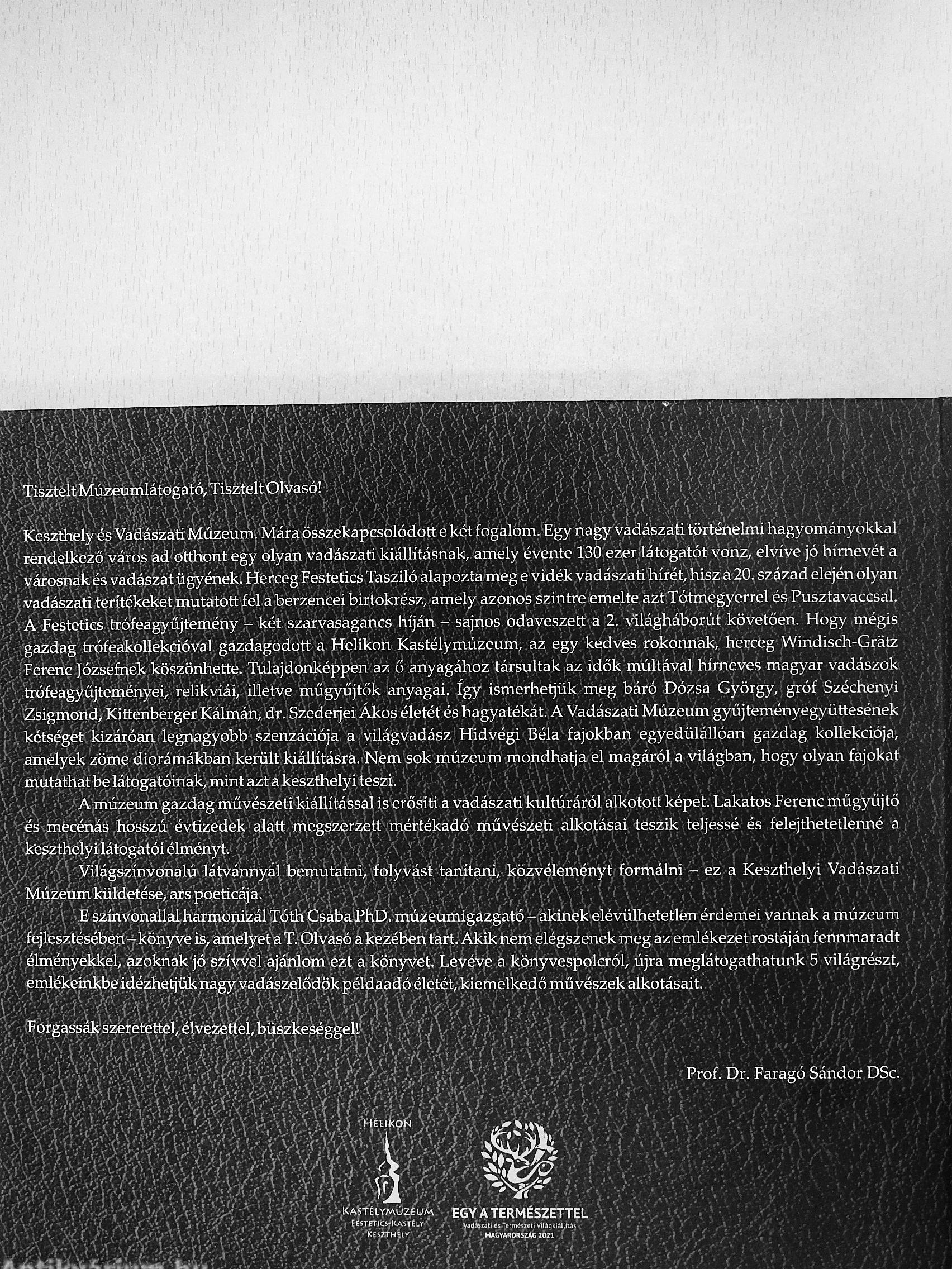 . ; Amúzeum gazdag művészeti kiállítássalis erősíti a vadászati kultúráról alkotott képet. Lakatos Ferenc műgyűjtő és mecénás hosszú évtizedek al^tt megszerzett mértékadó művészeti alkotásai teszik teljessé és felejthetetlenné a ¦k'eszthelyilátpgatóiélniénytv ; ¦ ; ,