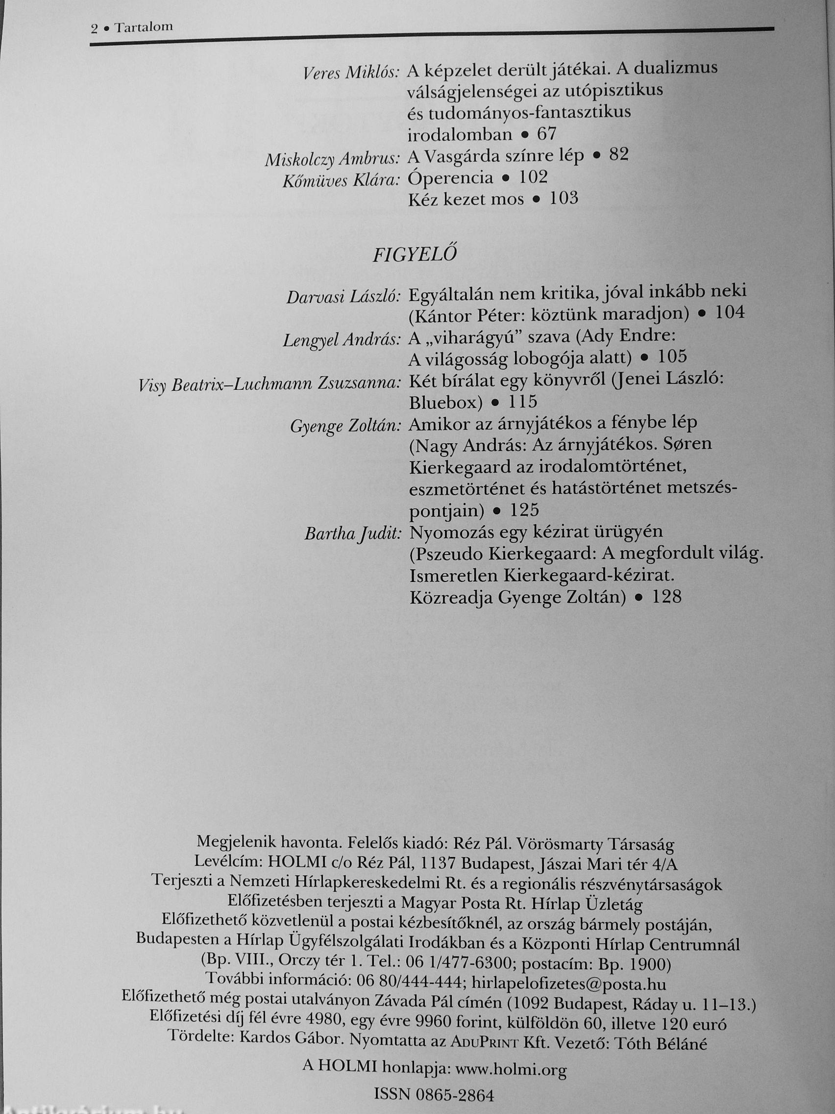| Megjegyzés: | Megjelenik havonta. További kapcsolódó személyek a könyvben. |