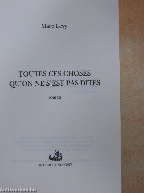 Toutes ces choses qu'on ne s'est pas dites est le huitieme roman de Marc Levy.