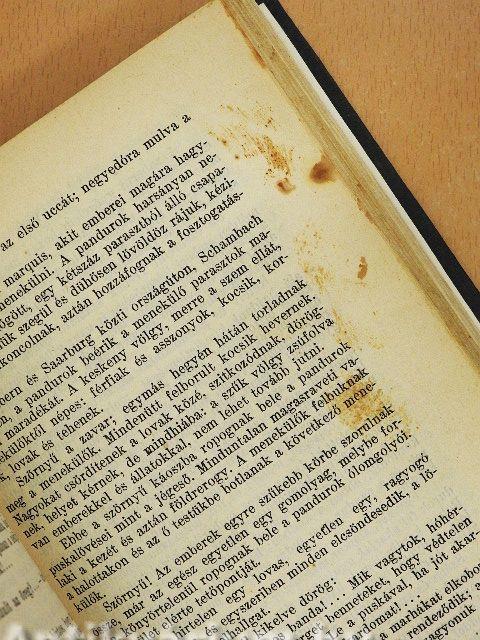 A könyv gerince kissé elszíneződött. Belülről megerősített példány. Az első oldalon tulajdonosi bejegyzés található.