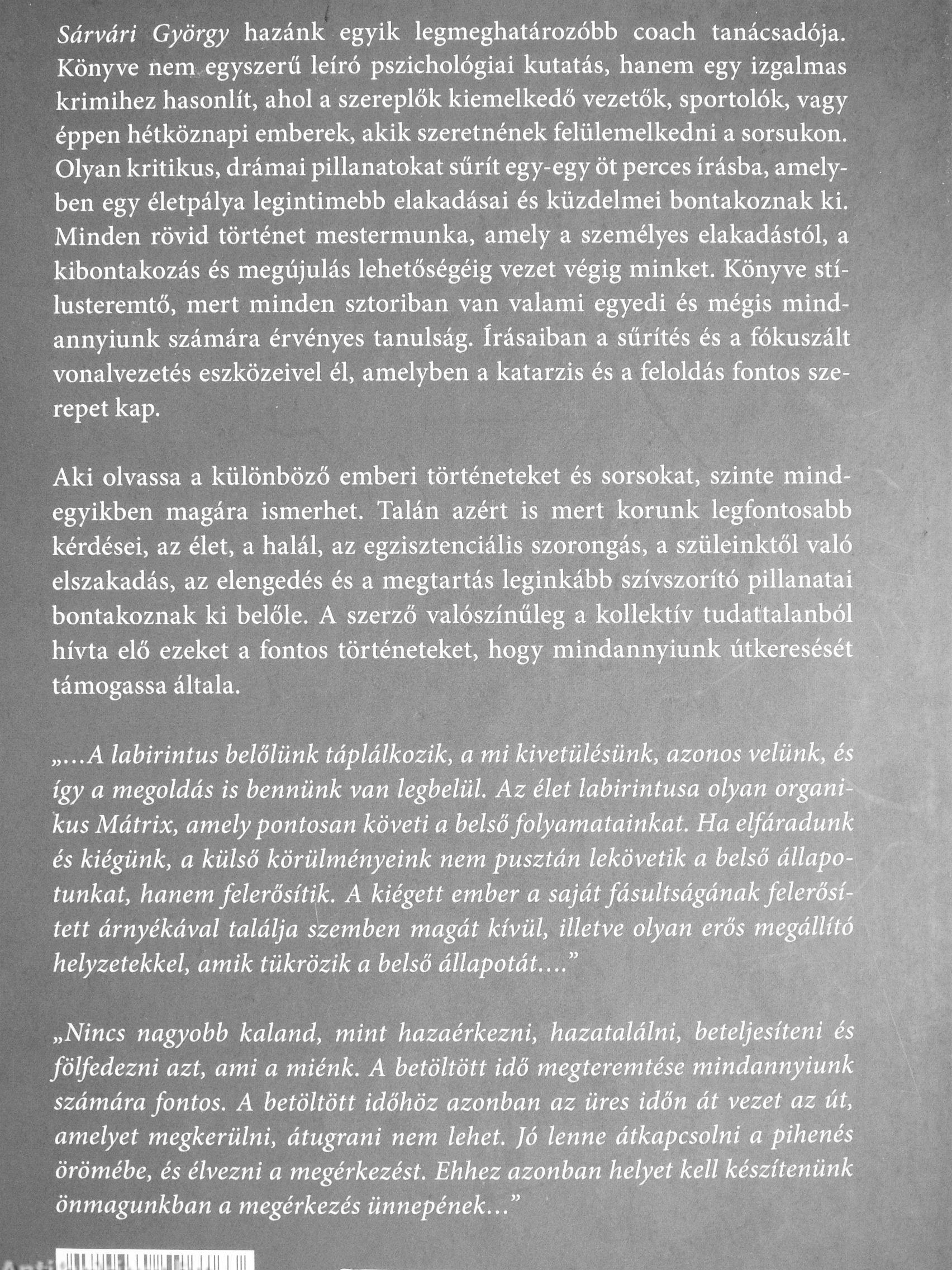 Sárvári György hazánk egyik legmeghatározóbb coach tanácsadója. Könyve nem egyszerű leíró pszichológiai kutatás, hanem egy izgalmas krimihez hasonlít, ahol a szereplők kiemelkedő vezetők, sportolók, vagy éppen hétköznapi emberek, akik szeretnének felülemelkedni a sorsukon. Olyan kritikus, drámai pillanatokat sűrít egy-egy öt perces írásba, amelyben egy életpálya legintimebb elakadásai és küzdelmei bontakoznak ki. Minden rövid történet mestermunka, amely a személyes elakadástól, a kibontakozás és megújulás lehetőségéig vezet végig minket. Könyve stílusteremtő, mert minden sztoriban van valami egyedi és mégis mindannyiunk számára érvényes tanulság. írásaiban a sűrítés és a fókuszált vonalvezetés eszközeivel él, amelyben a katarzis és a feloldás fontos szerepet kap.