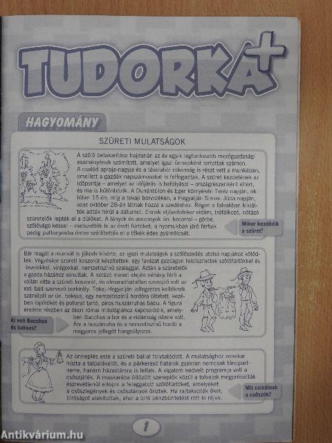 | Megjegyzés: | Színes illusztrációkat, rejtvényt tartalmaz. Tudorka+ és poszter melléklettel. Ajándék buborékfúvós, nyomdázós toll-melléklet nélküli. |