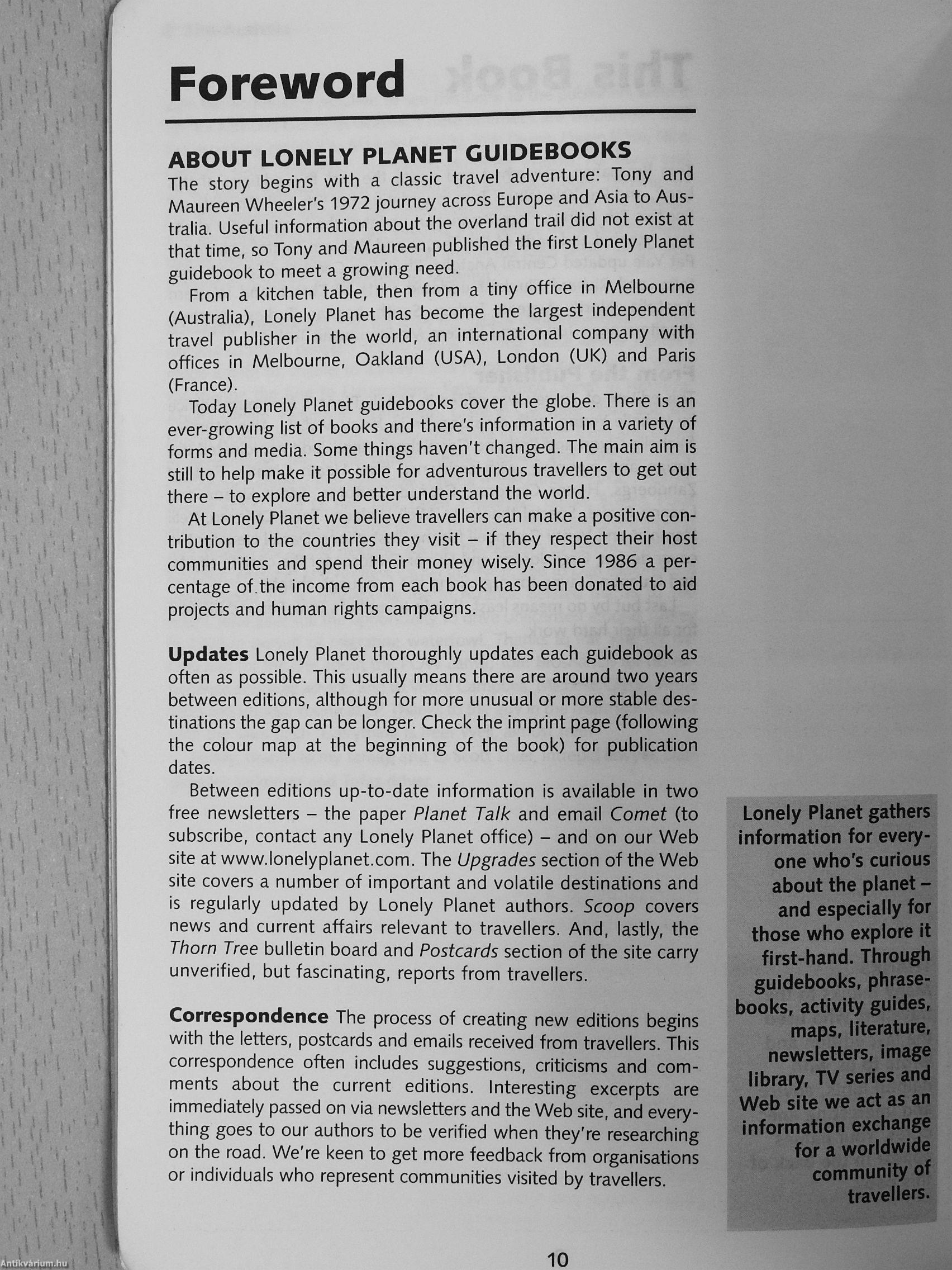 | Megjegyzés: | 7. kiadás. Színes fotókkal, fekete-fehér térképekkel. |