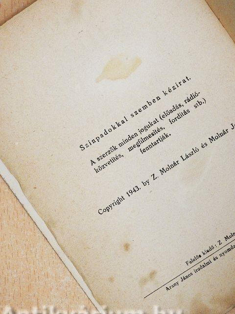 | Megjegyzés: | Szinpadokkal szemben kézirat. Nyomtatta az Arany János irodalmi és nyomdai műintézet rt., Budapest. |