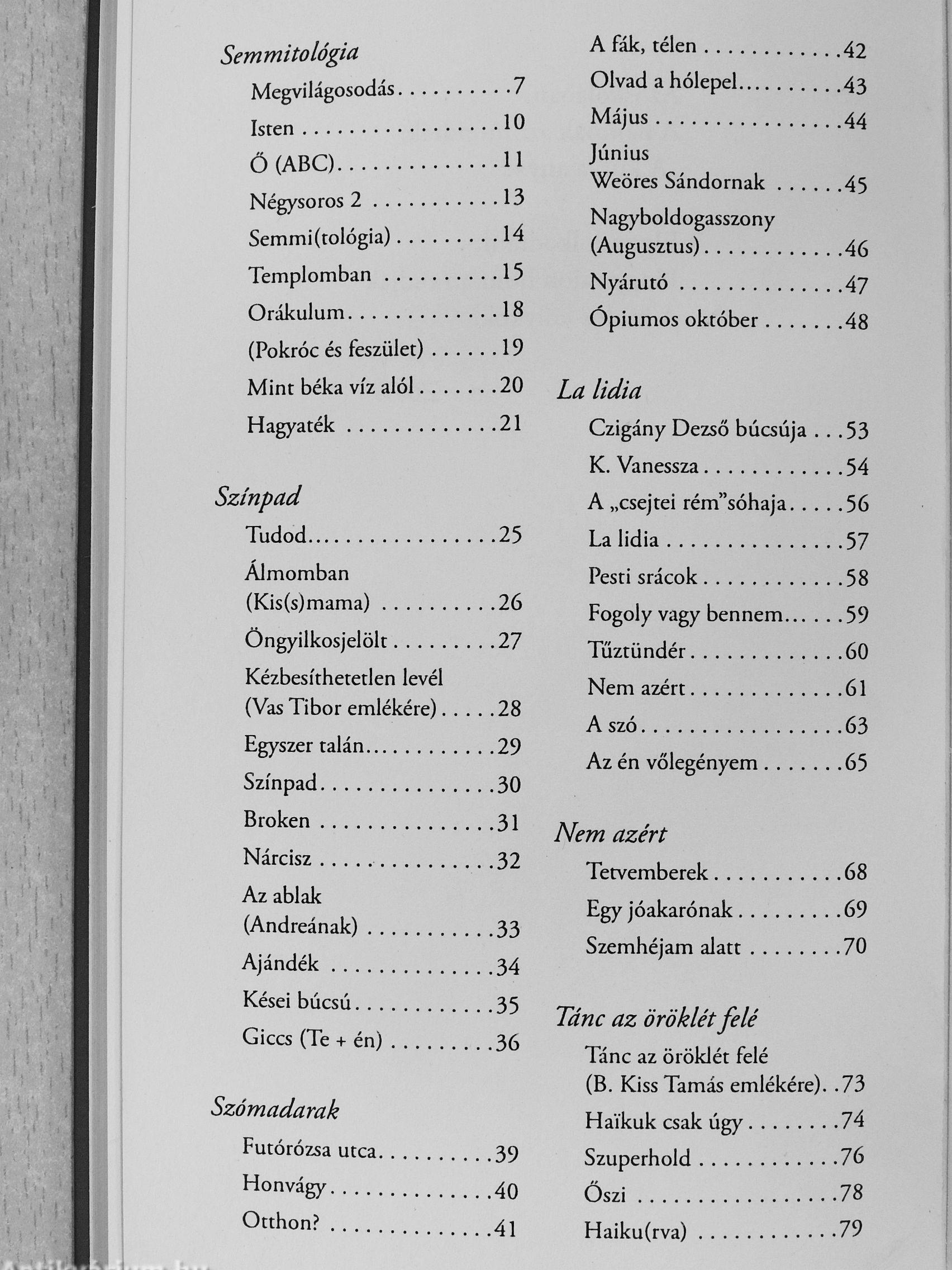 A költő - mégha művelt is - nem föltétlenül a verseiben akar okos lenni. Azokban érzelmeinek, indulatainak enged szabad folyást elsősorban. Nem valamiféle természetfölötti lény, nem próféta, még csak nem is néptribunus - épp olyan esendő ember, mint az őt körülvevő köznapi figurák, csak éppen az átlagosnál érzékenyebb idegrendszerrel megáldva (vagy meg-ven/e), amely antennaként működik: felfogja belső kozmoszunk jeleit, rejtett üzeneteit - és szavakba önti azokat. Nem mindegy persze, hogy milyen szavakba. Egy olasz pályatársam azt fejtegette egy konferencián, hogy a költő a leghasználatosabb eszközt, a szót használja, melynél kevés van, mit jobban elkoptattak, _ mellyel jobban visszaéltek volna a mindennapi élet-Jf ben.
