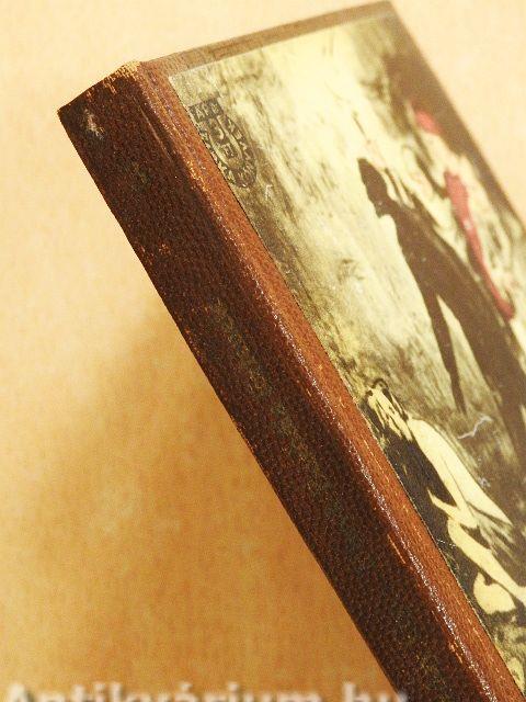 A borító kopott, éle sérült, a lapélek foltosak. Az eredeti borító egy része az első kötéstáblára visszaragasztva.