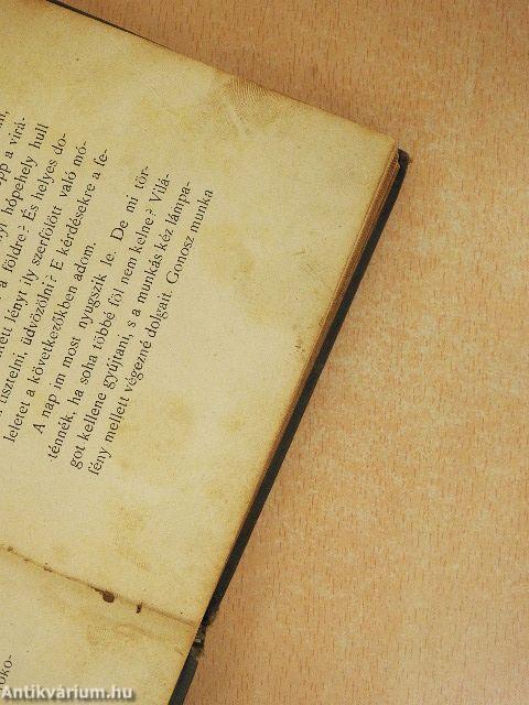 A borító sarkai kopottak, néhány lap foltos. Az előzéklap hiányzik.