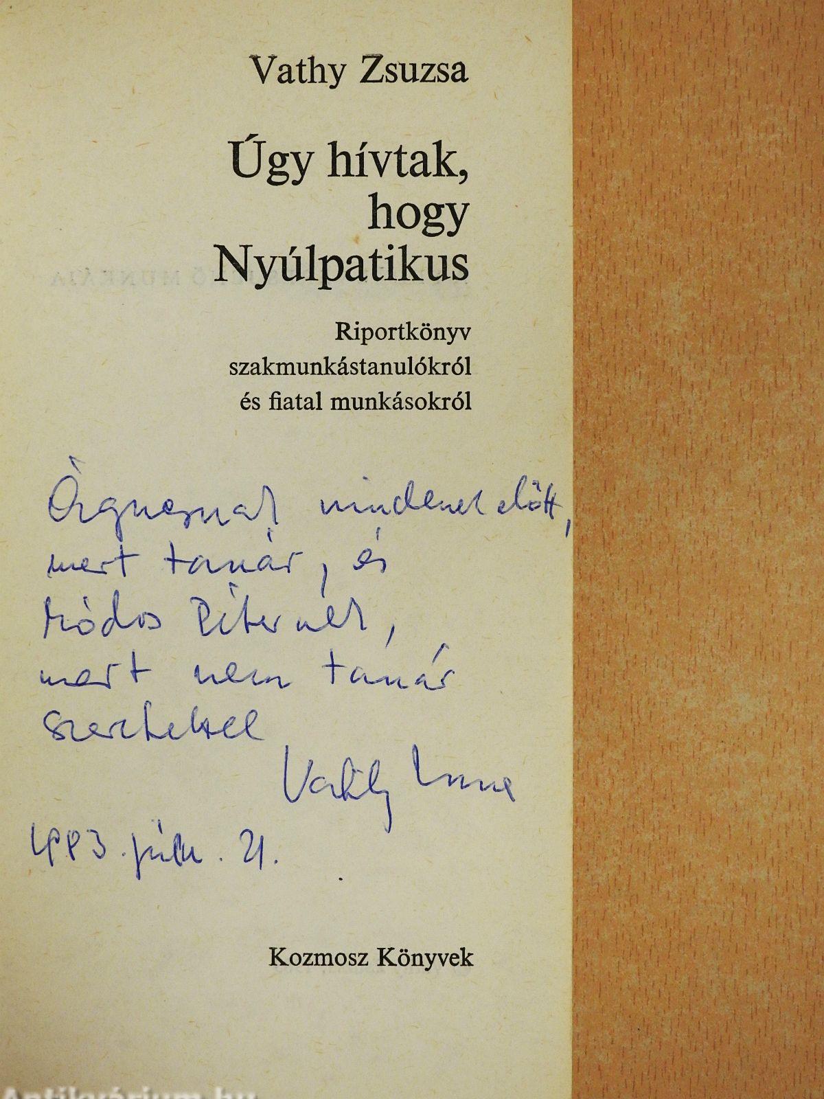 Megjegyzés: Vathy Zsuzsa szerző által dedikált példány.