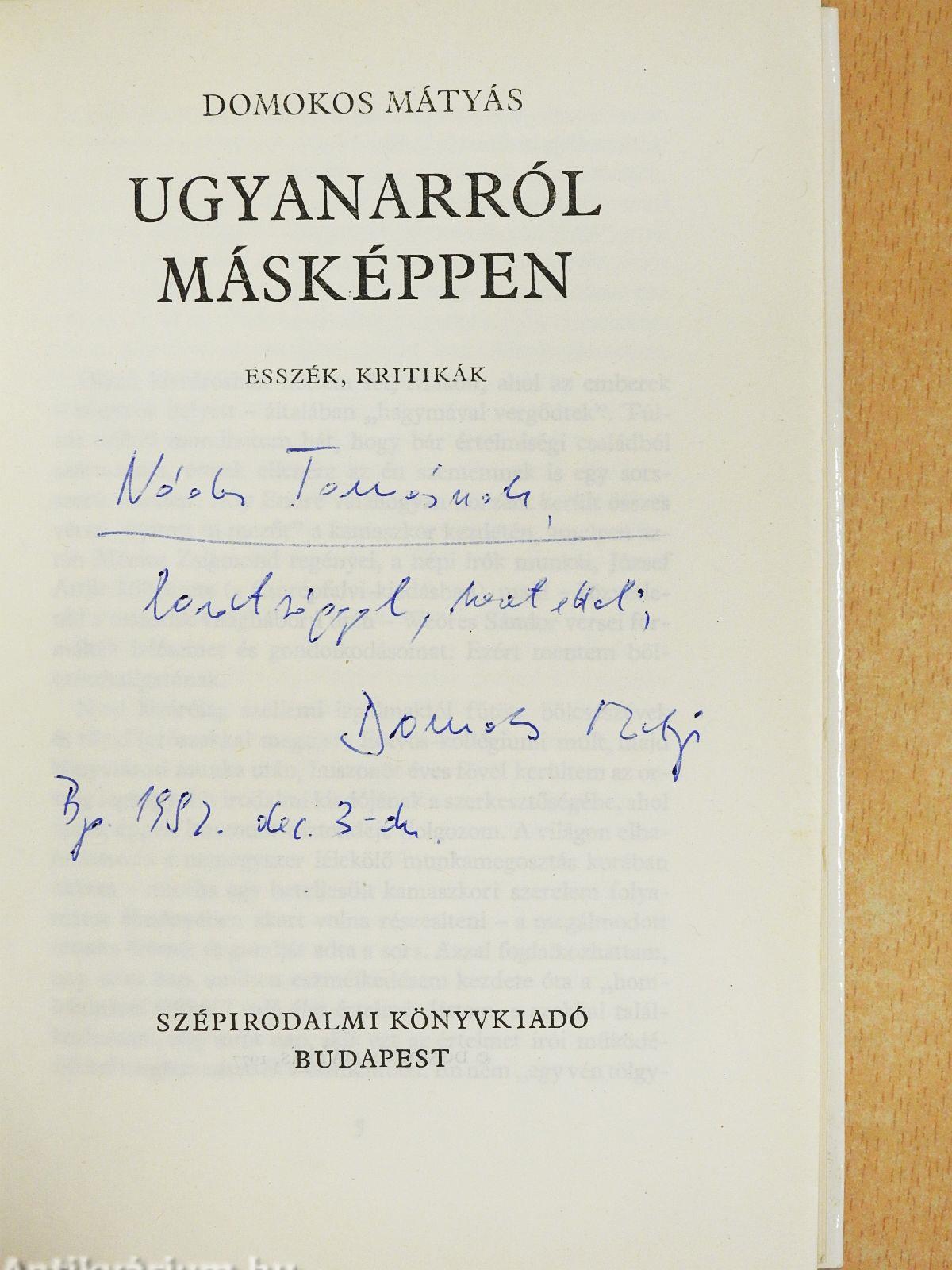 Megjegyzés: Domokos Mátyás szerző által dedikált példány.