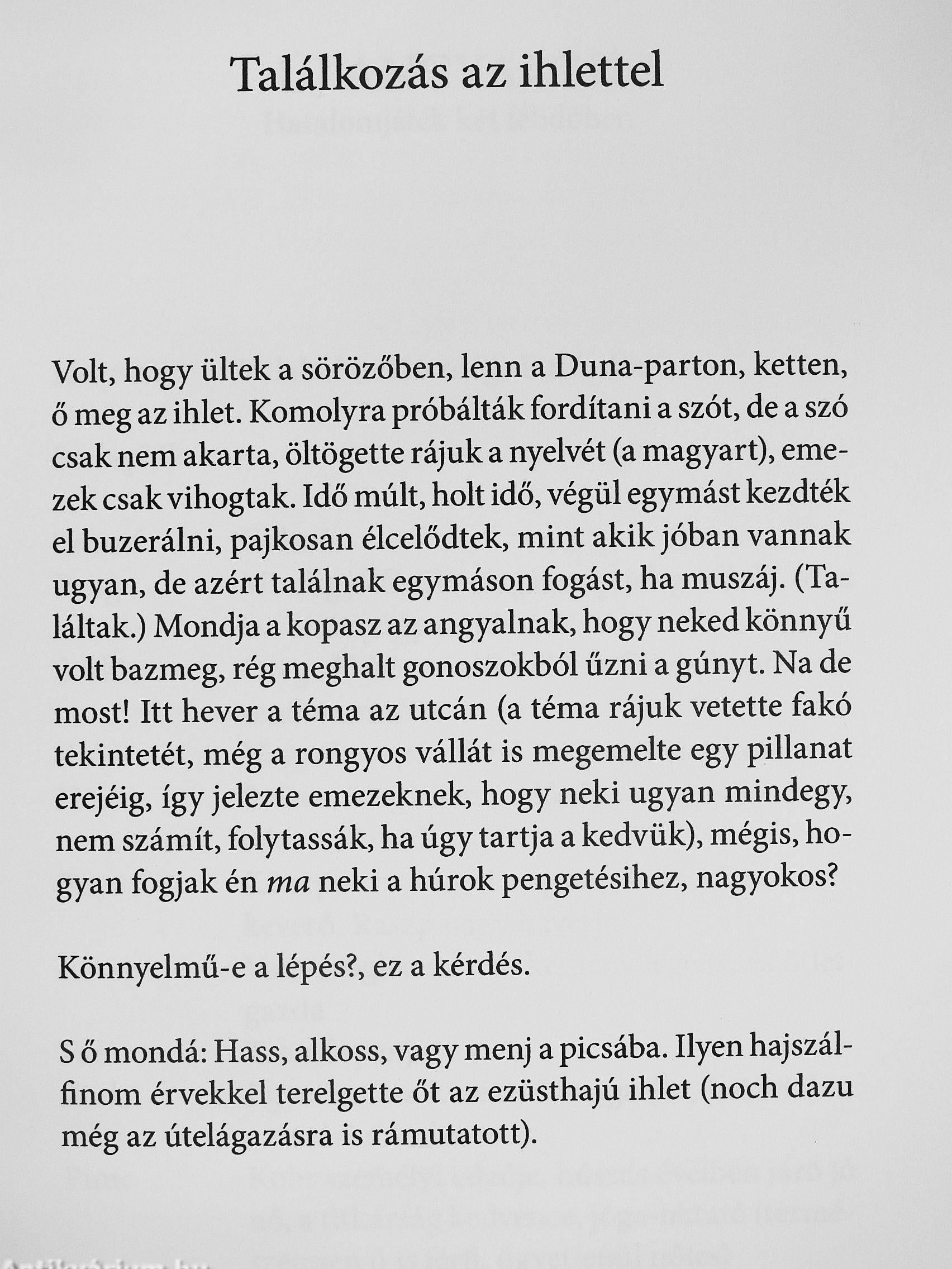 A regény {nevezzük most annak, regény) hőse pörgő nyelvű, frivol nő, mondja, csak mondja az angyalnak, amit lát, maga mögött hagyott életének fölvillanó képeit. A történet hátterében könnyen felismerhetőek távolabbi és közelmúltunk közismert fordulatai, s hogy mindezek hogyan formálták hősnőnk sorsát.