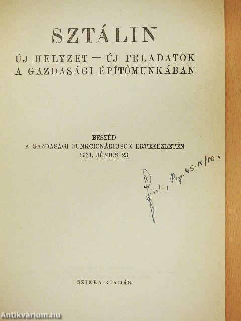 Oka ennek az, hogy az utóbbi időben az ipar fejlődésének feltételei gyökeresen megváltoztak, új helyzet állt elő, mely a vezetésnek új módszereit követeli meg, egyes gazdasági funkcionáriusaink azonban, ahelyett hogy munkájuk módszereit megváltoztatnánk, továbbra is a régi módra folytatják munkájukat. A dolog veleje tehát az, hogy az ipar fejlődésének új feltételei újfajtájú munkát követelnek meg, egyes gazdasági funkciónáriusaink azonban ezt nem értik, nem látják, hogy ma másképp kell a munkát vezetni, mint eddig."