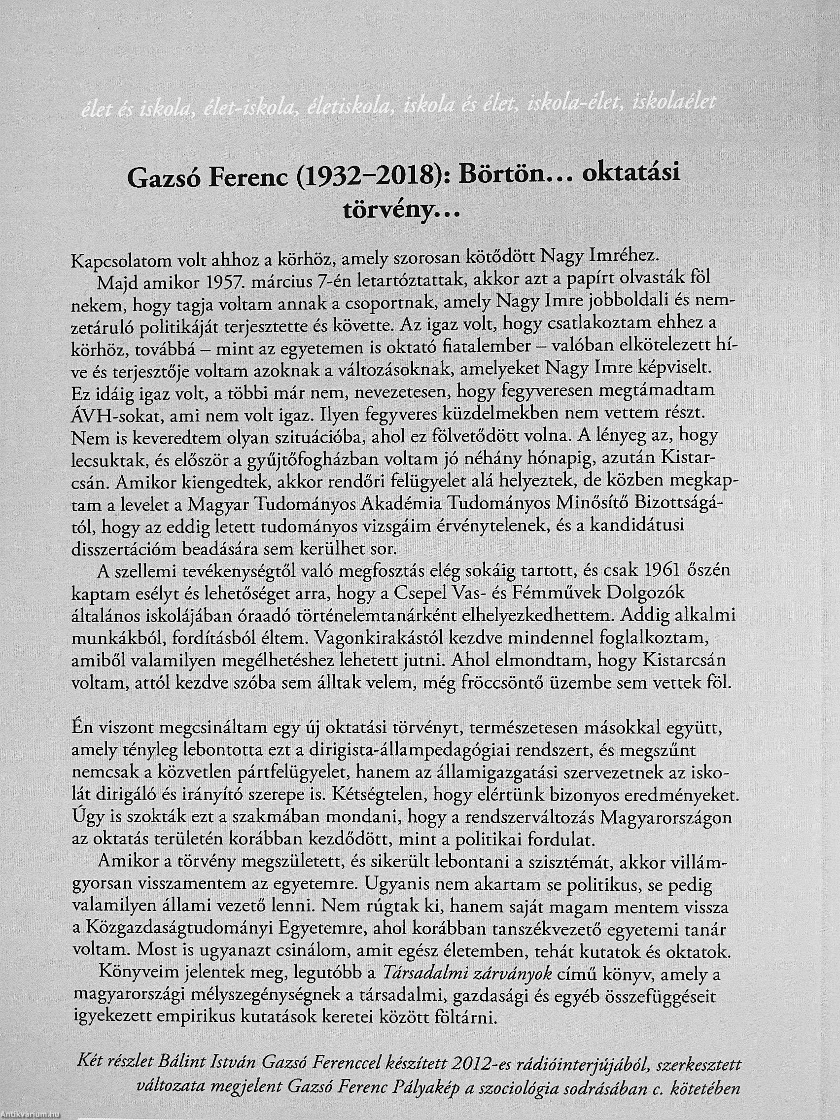 Gazsó Ferenc (1932-2018): Börtön oktatási törvény