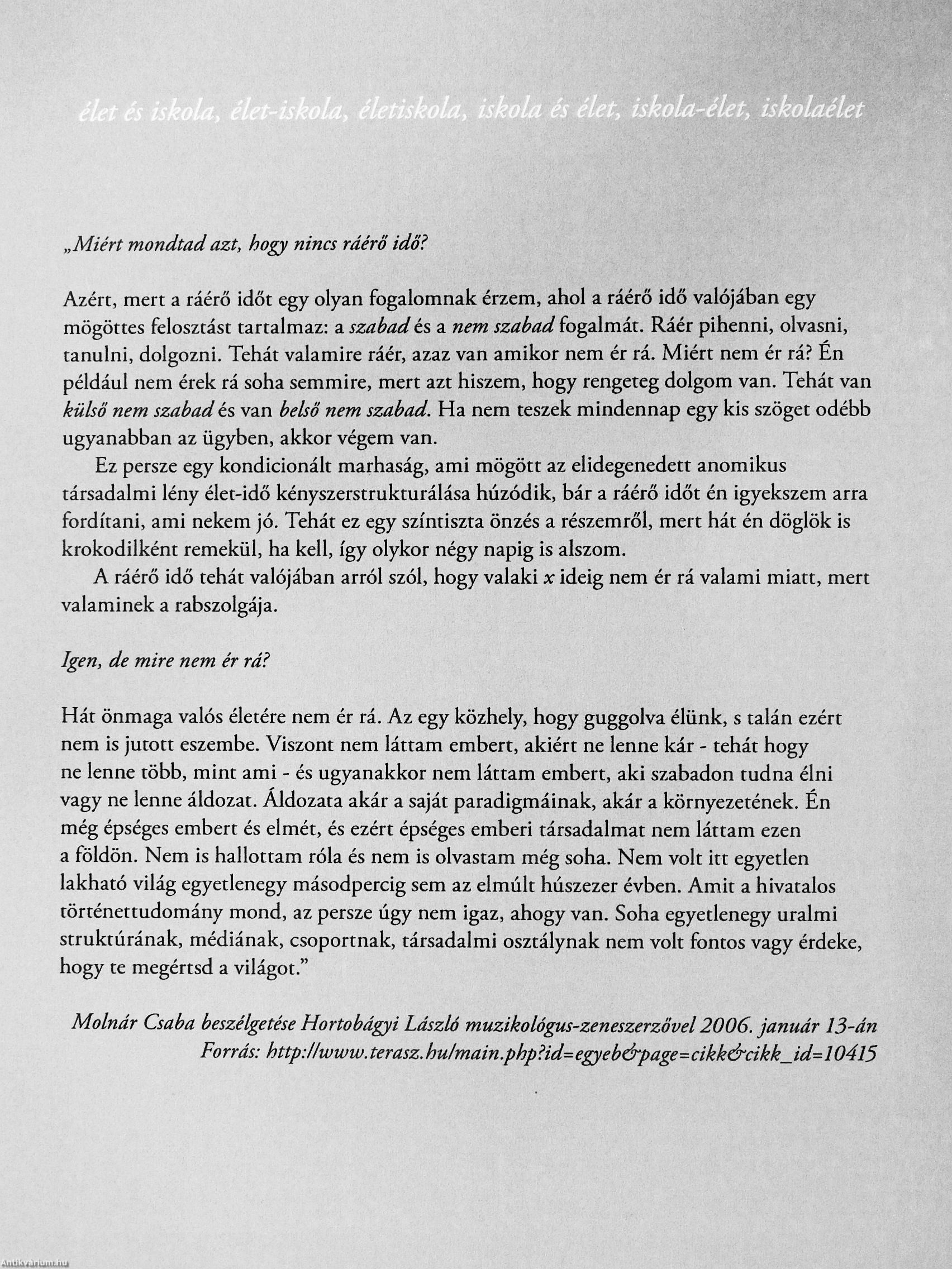 Molnár Csaba beszélgetése Hortobágyi László muzikológus-zeneszerzővel2006. január 13-án Forrás: http:llwww. terasz. hu/main.php?id=egyeb&page=cikk&cikk_id=104l5 Vissza