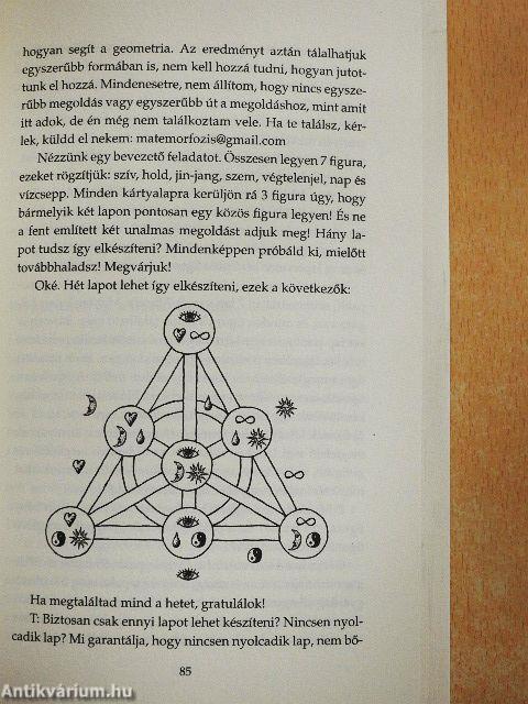 Könyvem a legtöbbet formálódott MateMorfózis-témák közös szálra felfűzött gyűjteménye. Célja az ismeretterjesztés, a matematikához fűződő viszonyt tekintve laikus olvasókhoz szól. A fejezetek egy-egy jelenséget járnak körül, a hétköznapi szemléletből kiindulva és a fantáziánkra építve. Nincsenek benne képletek, hacsak nem kifejezetten a matematikai nyelvezet erejét szeretném éreztetni. Ahol lehet, kerülöm a szakkifejezések használatát.