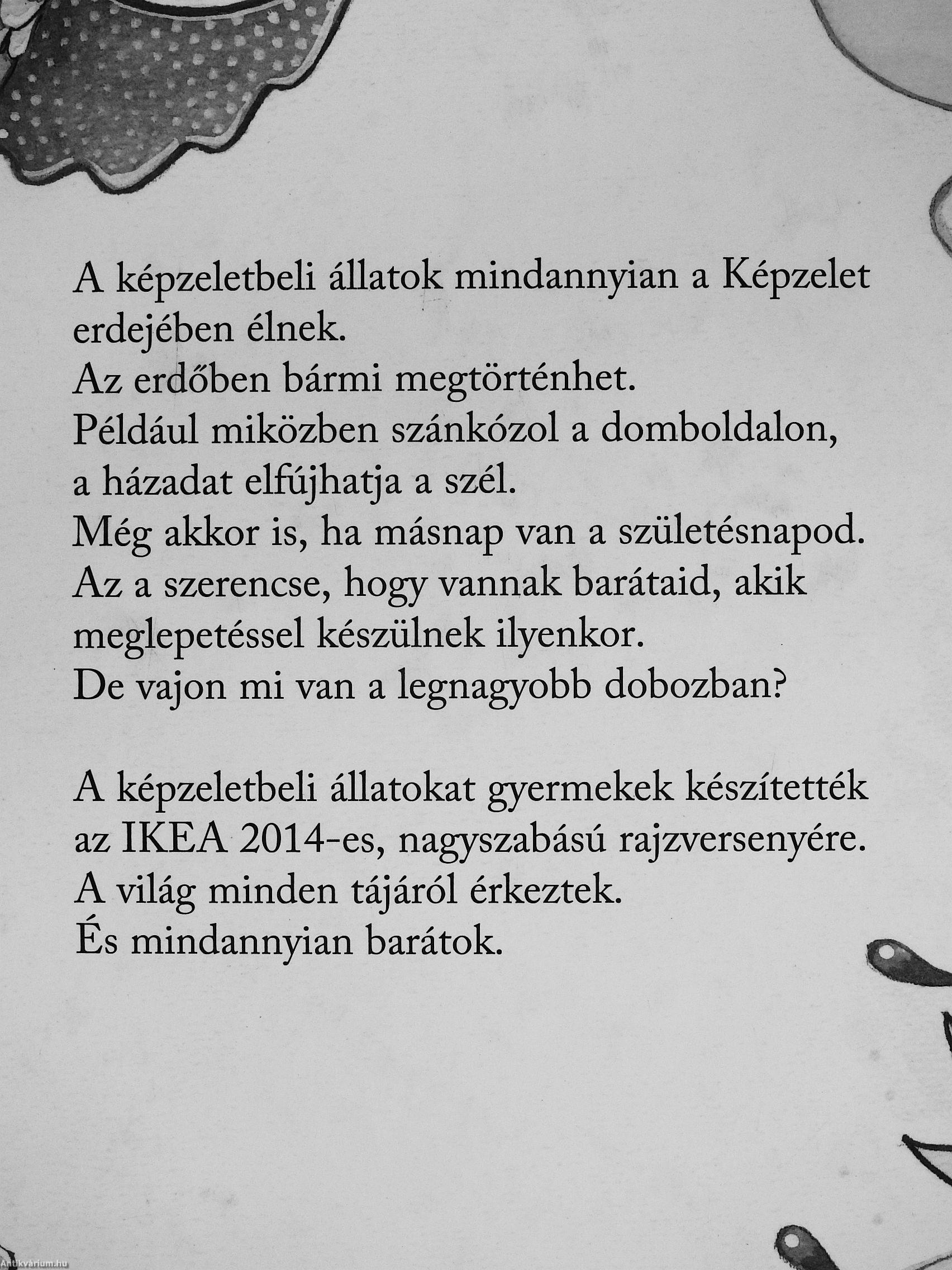 A képzeletbeli állatokat gyermekek készítették az IKEA 2014-es, nagyszabású rajzversenyére. A világ minden tájáról érkeztek. Es mindannyian barátok.