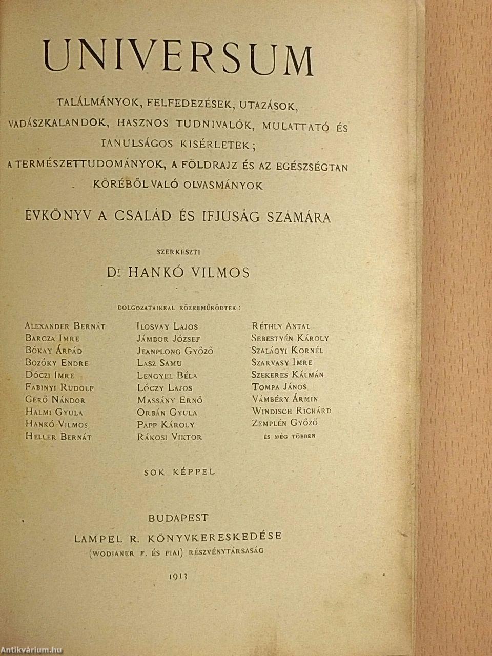 | Hankó Vilmos dr.: A magyar munkája az emberiség kulturhistóriájában | 189 |