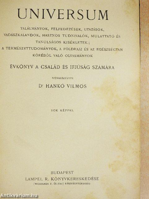 Hálás kegyelettel gyújt fáklyát az Universum dr. Hankó Vilmos emlékének, aki e mű megindítása óta annak szerkesztője és nemes lelkesedéstől áthatott irányító szelleme volt.