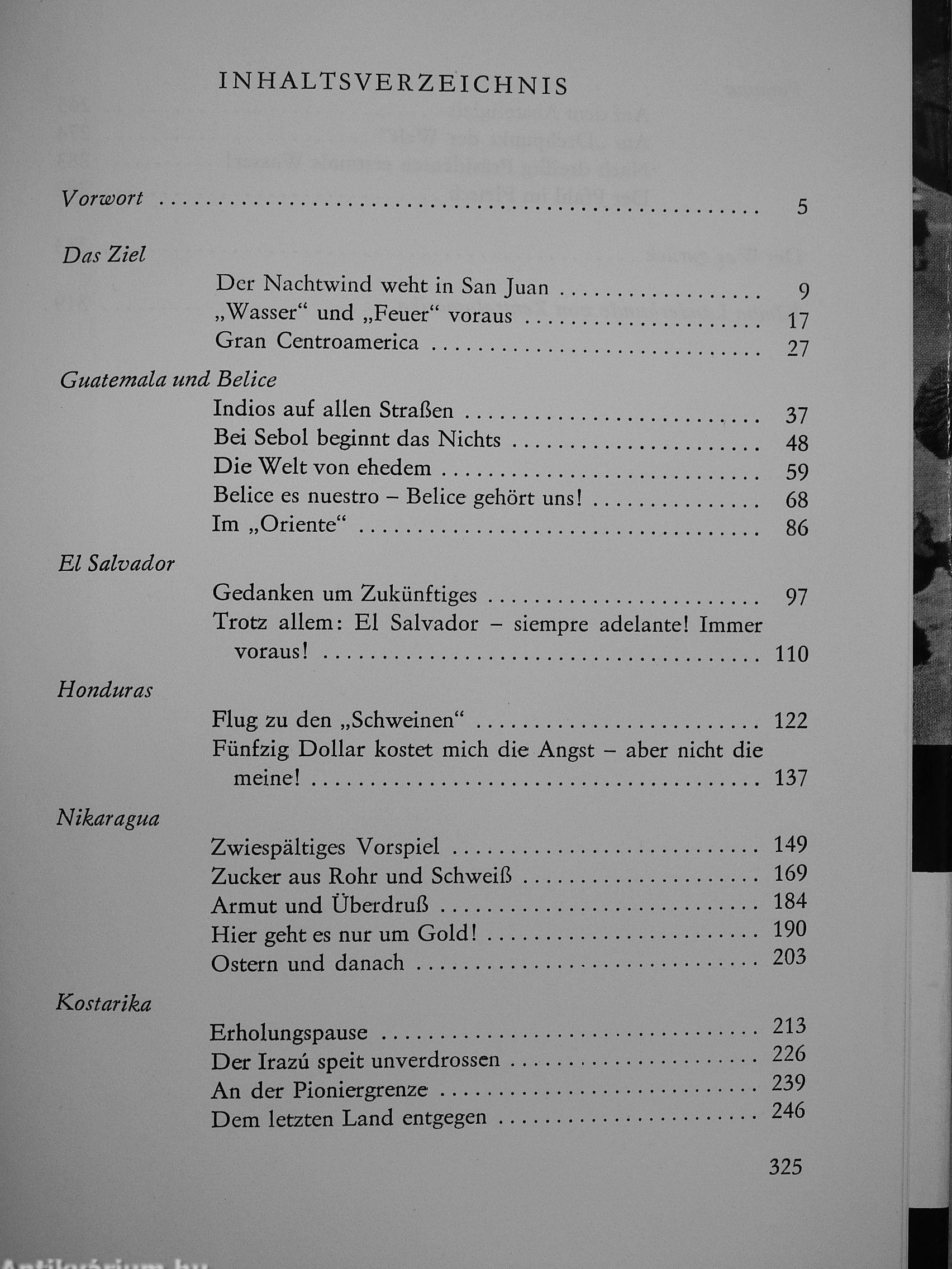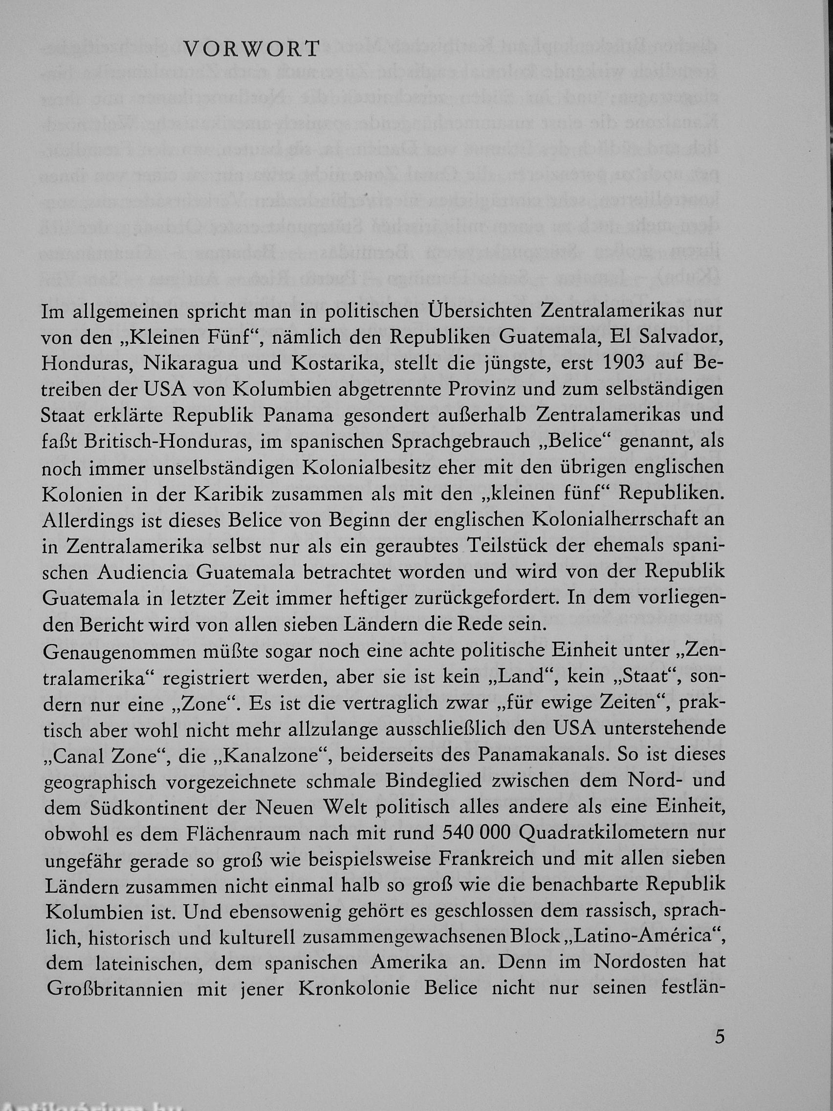 Zu Fuß und mit dem Jeep, im Boot und im Flugzeug legte der namhafte Hamburger Geograph wieder viele tausend Kilometer in Zcntralamerika zurück. Kreuz und quer durchstreifte er das ausgedehnte Gebiet zwischen Pazifik und Karibischem Meer, zwischen Mexiko und Kolumbien. Spannend und übervoll an Erlebnissen ist auch dieser neue Reisebericht Dr. Helbigs. Er führt in das von Maya-Indianern besiedelte guatemaltekische Hochland, in die feuchtheißen Niederungen des Petén und in die britische Kolonie Belize, über die nur selten einmal eine Nachricht bis zu uns dringt; in die von zahlreichen Vulkanen überragten dichtbesiedelten Landschaften El Salvadors wie in die fast menschenleere Urwaldwildnis im Nordosten von Nikaragua und die von den USA „auf ewig" gepachtete Panamakanalzonc. Wieder zeigt uns der Autor eine uns fremde Welt voller Gegensätze und Widersprüche, voller politischer, wirtschaftlicher und sozialer Probleme, die einer baldigen Lösung harren. Ein Erlebnisbericht, der erstmalig ein geschlossenes Bild aller sieben zentralamerikanischen Länder vermittelt. Vissza